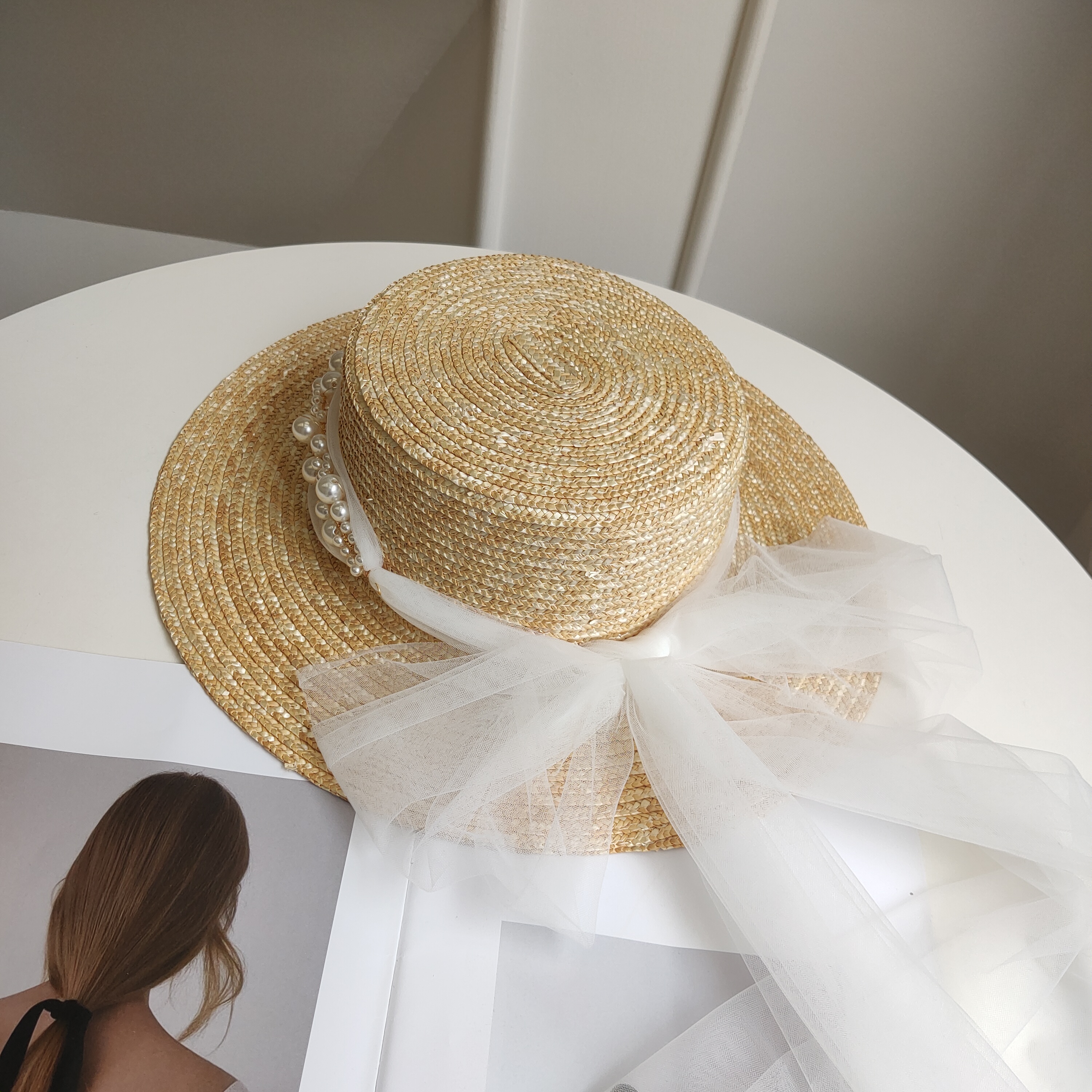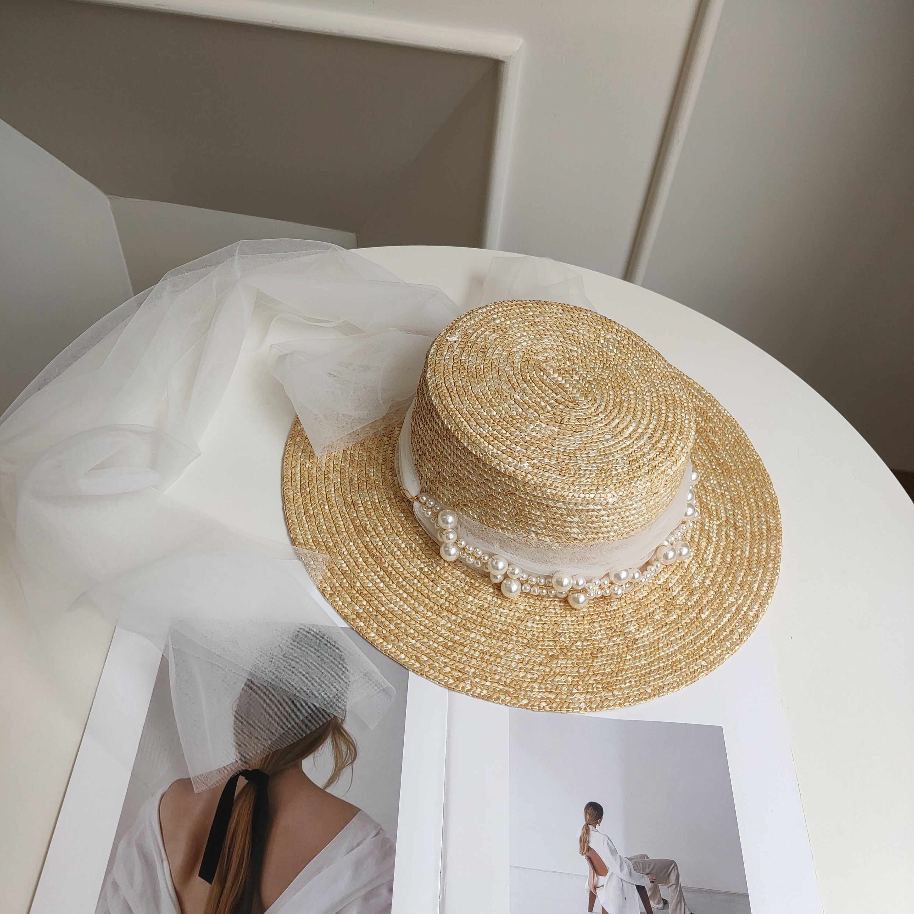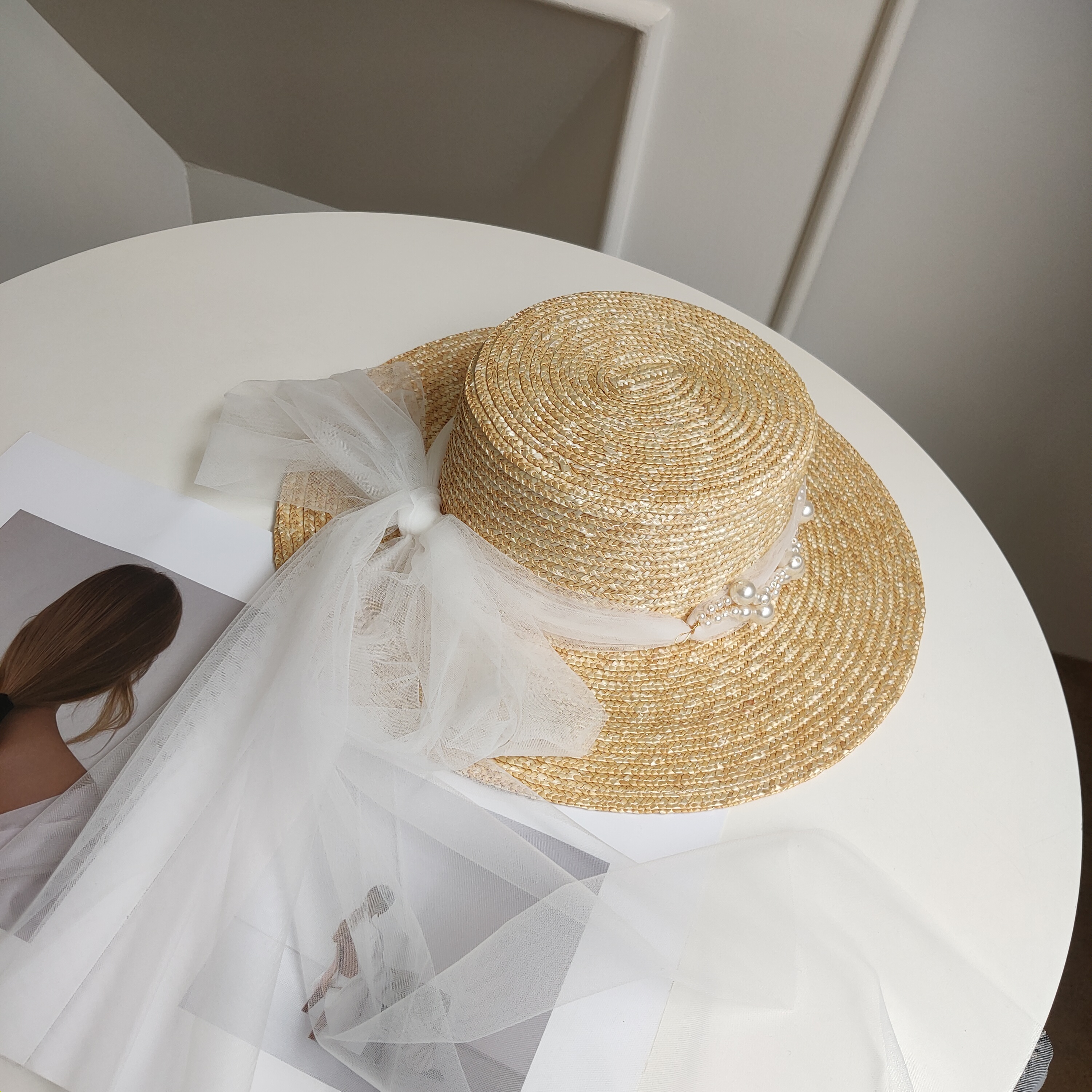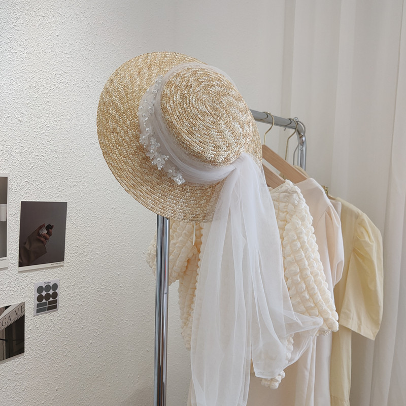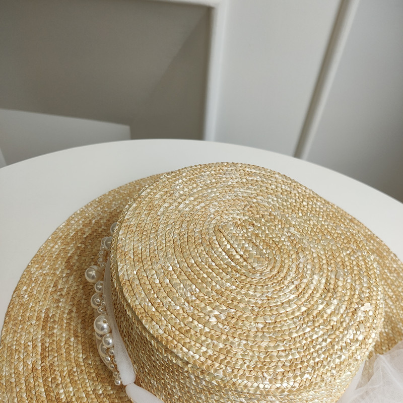 Note: The pearl mesh can be removed. The length of the pearl mesh fixed on the hat is not as long as that of the pearl mesh. The material of the wheat straw is rough in workmanship, and broken grass joints cannot be avoided.