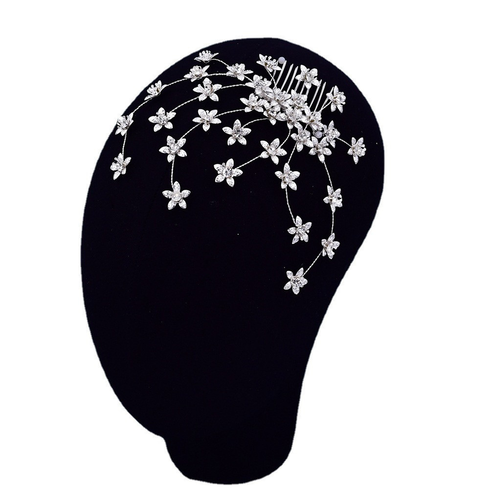 Style:Female styleModeling:waveTreatment technology:Pure handmadeCrystal type:White crystalColor:Silver Hair Comb HP502