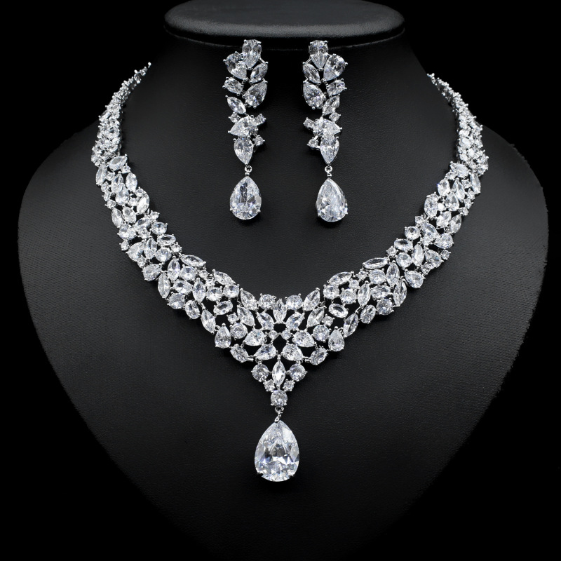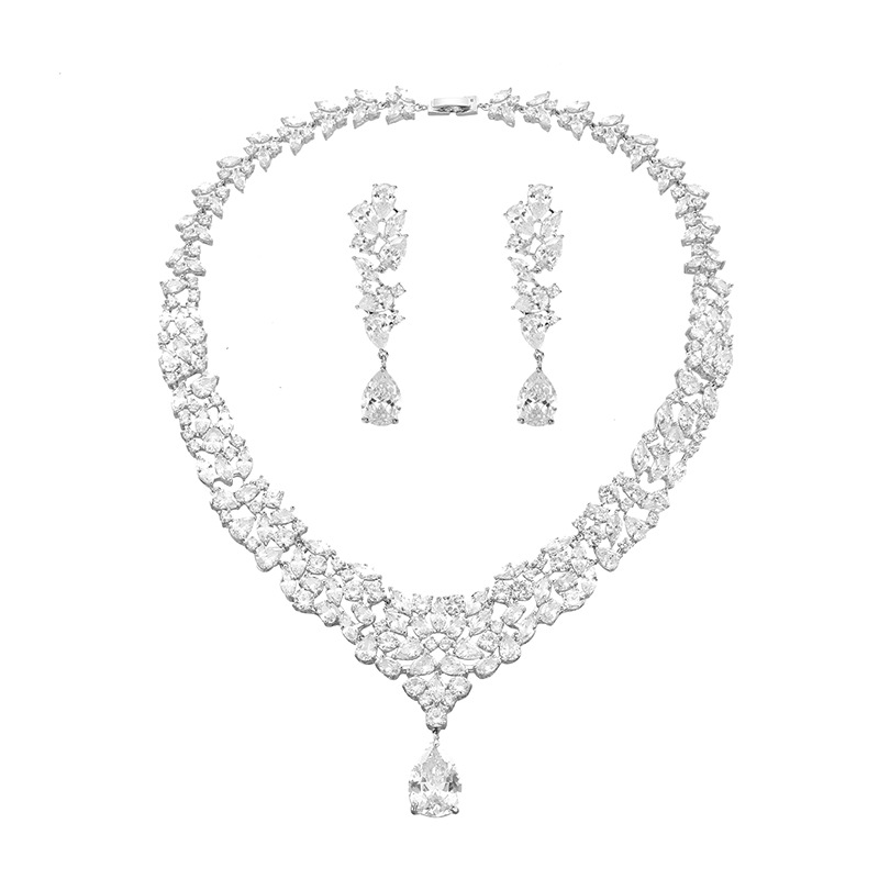 Bridal Zircon Necklace Two-piece Earrings Set
