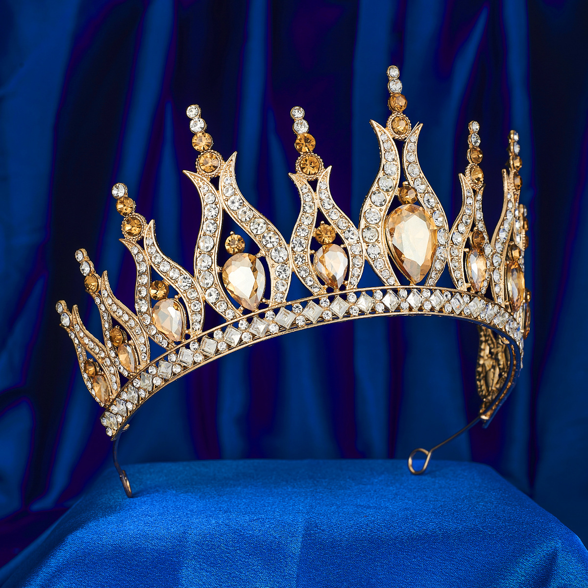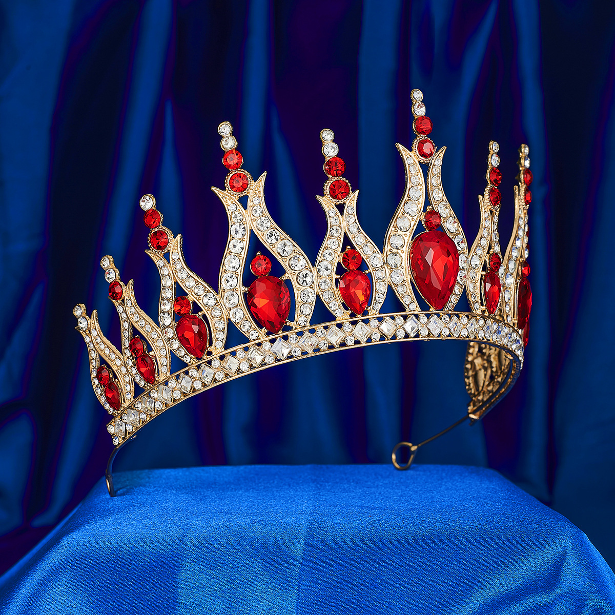 Colors: Gold + Red Rhinestones, Gold + Green Rhinestones, Gold + Royal Blue Rhinestones, Gold + Champagne Rhinestones, Silver + White Rhinestones, Silver + AB Color Rhinestones