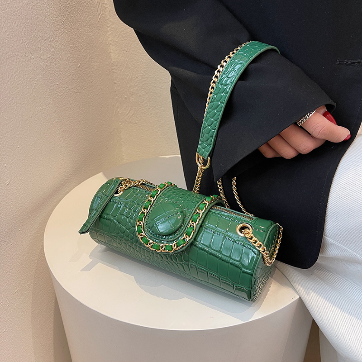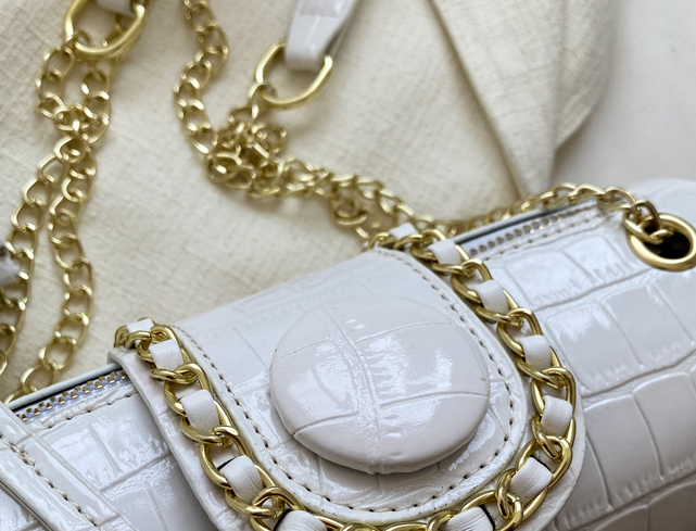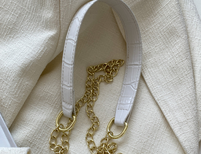 Popular elements: stitching, crocodile pattern, chain