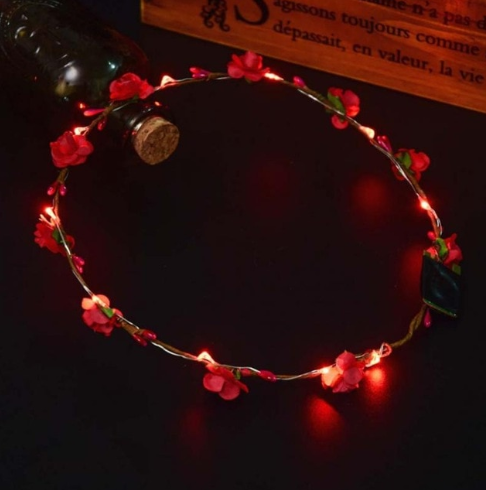Do your little ones love to dress like a princess? Get this beautiful wreath for a fun and flourishing day! This crown is made with beautiful flowers and LED lights. Delicately made and designed for a beautiful and elegant princess look! Perfect for theme parties and birthday parties. Let your children be a princess or a fairy anytime!