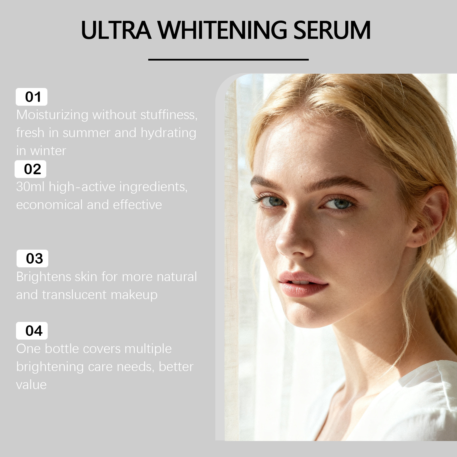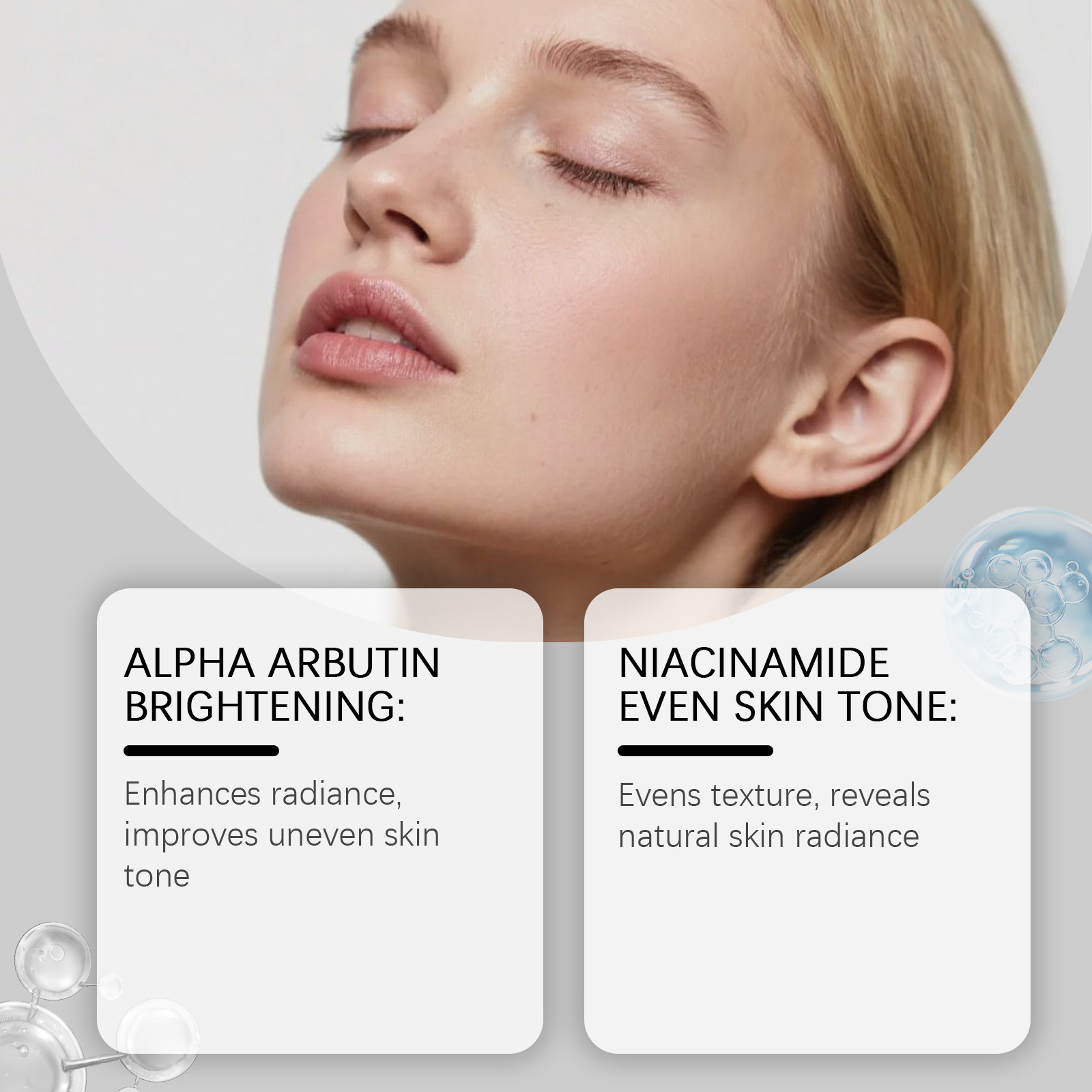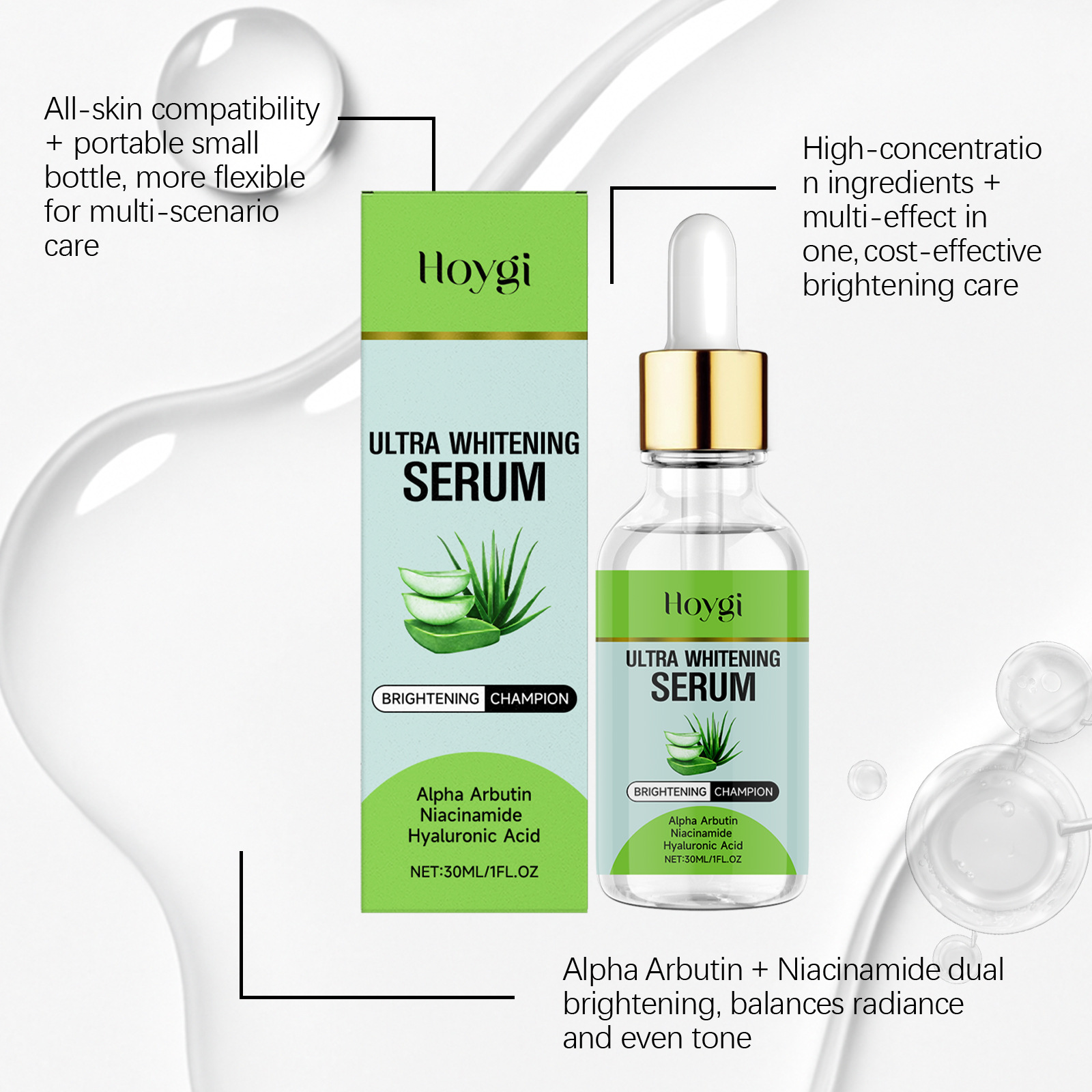 Ingredients: water, glycerin, 1,2- hexanediol, carbomer, arginine, allantoin, α-arbutin, nicotinamide, hyaluronic acid, aloe vera extract.