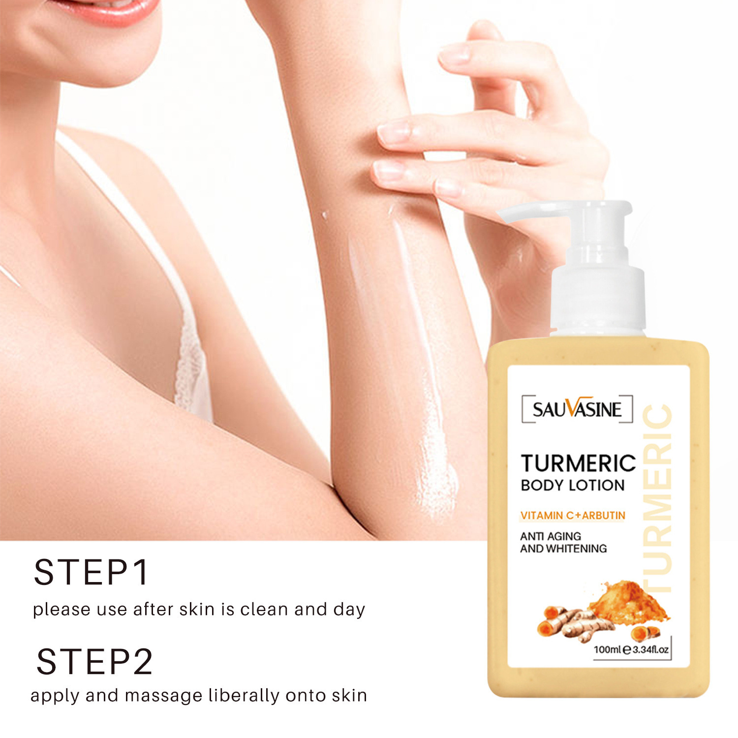 Tumeric Body Lotion is made with purest ginger, betaine, hyaluronic acid and other raw materials, skin friendly, and it is a great body cream.