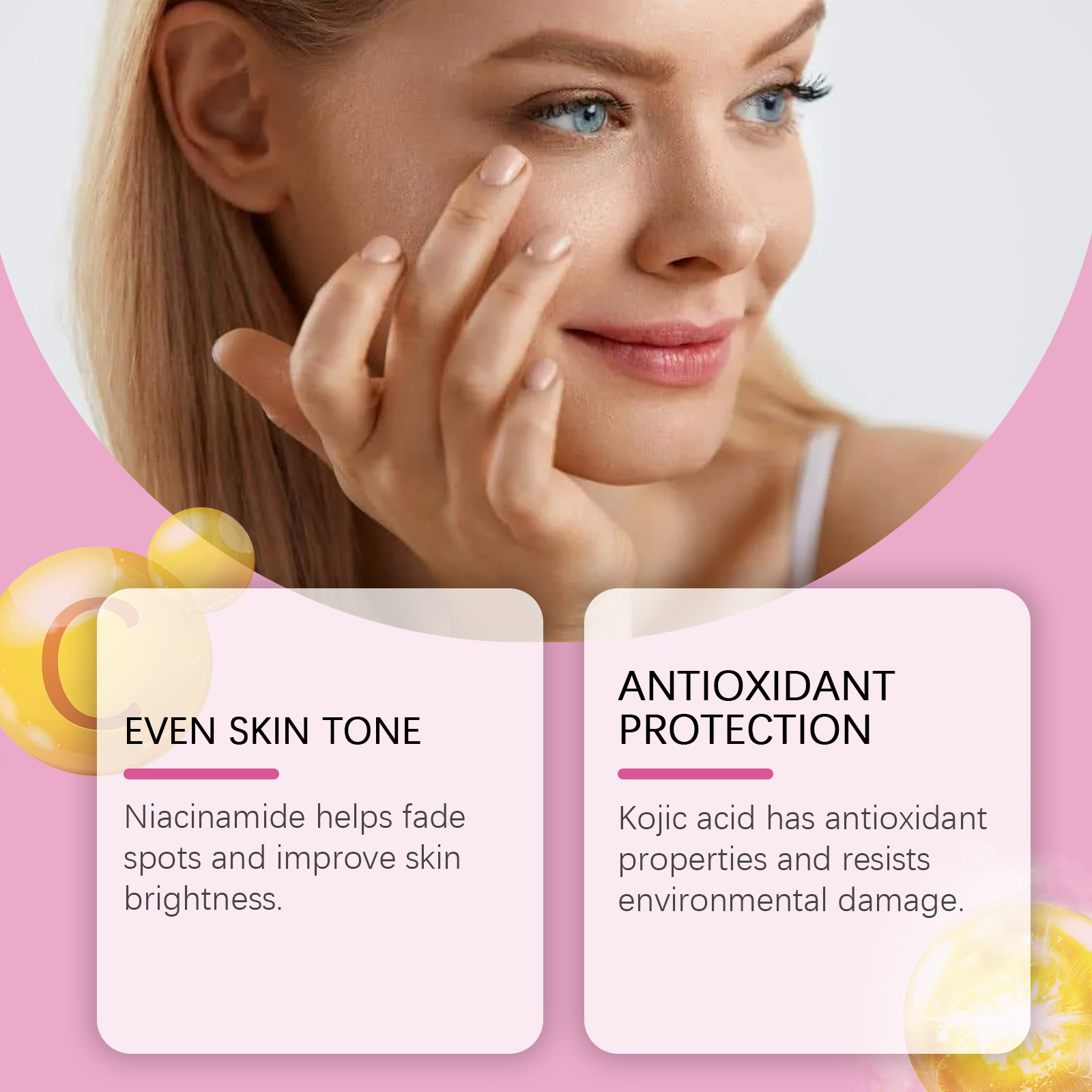 Ingredients: glycerol, hyaluronic acid, vitamin C, nicotinamide, kojic acid