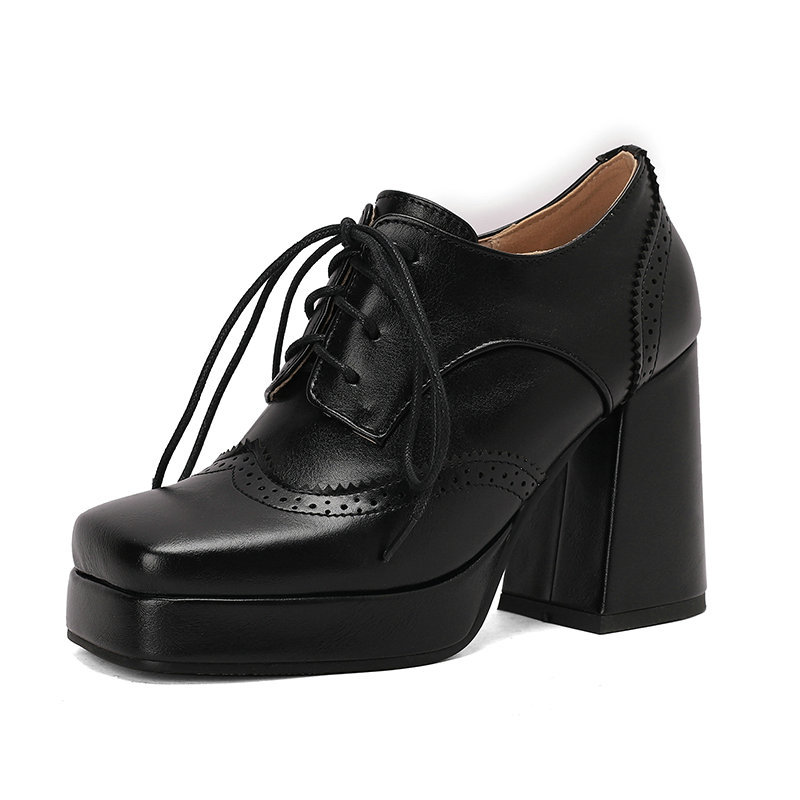British Brogue Women's Shoes Carved Square Toe Platform