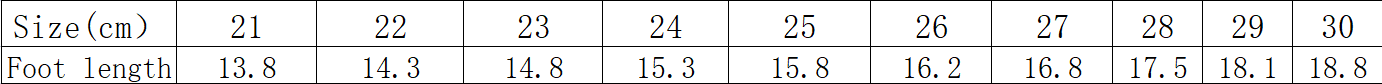 Sizes: 21, 22, 23, 24, 25, 26, 27, 28, 29, 30