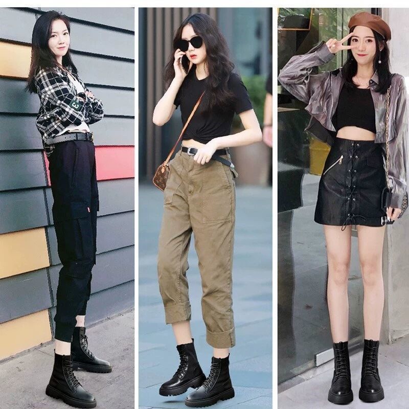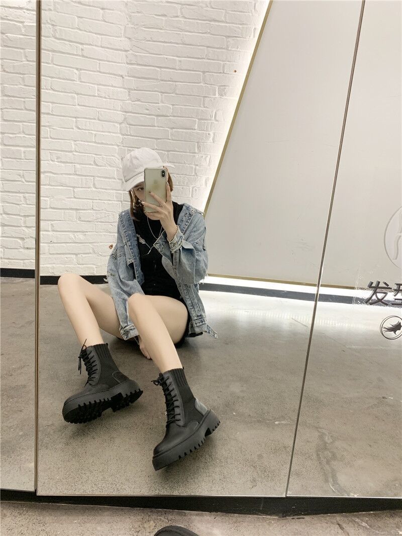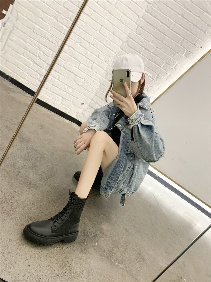 2020 spring and autumn new British style Martin boots for female students Korean version of the wild thick-soled front lace-up handsome motorcycle boots