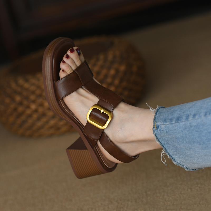 Popular elements: shallow mouth, thick heel, platform, metal, belt buckle, Roman style