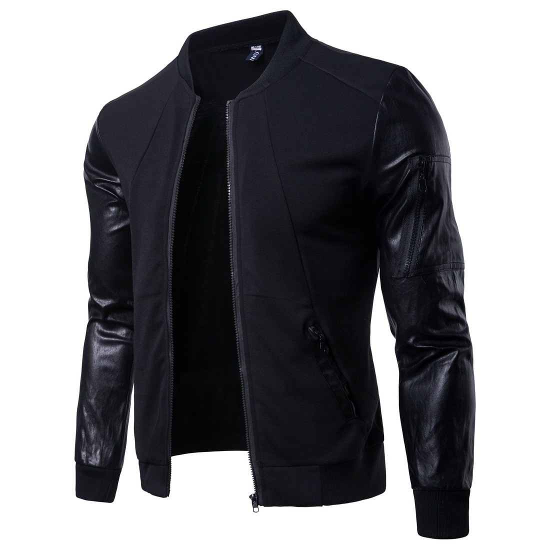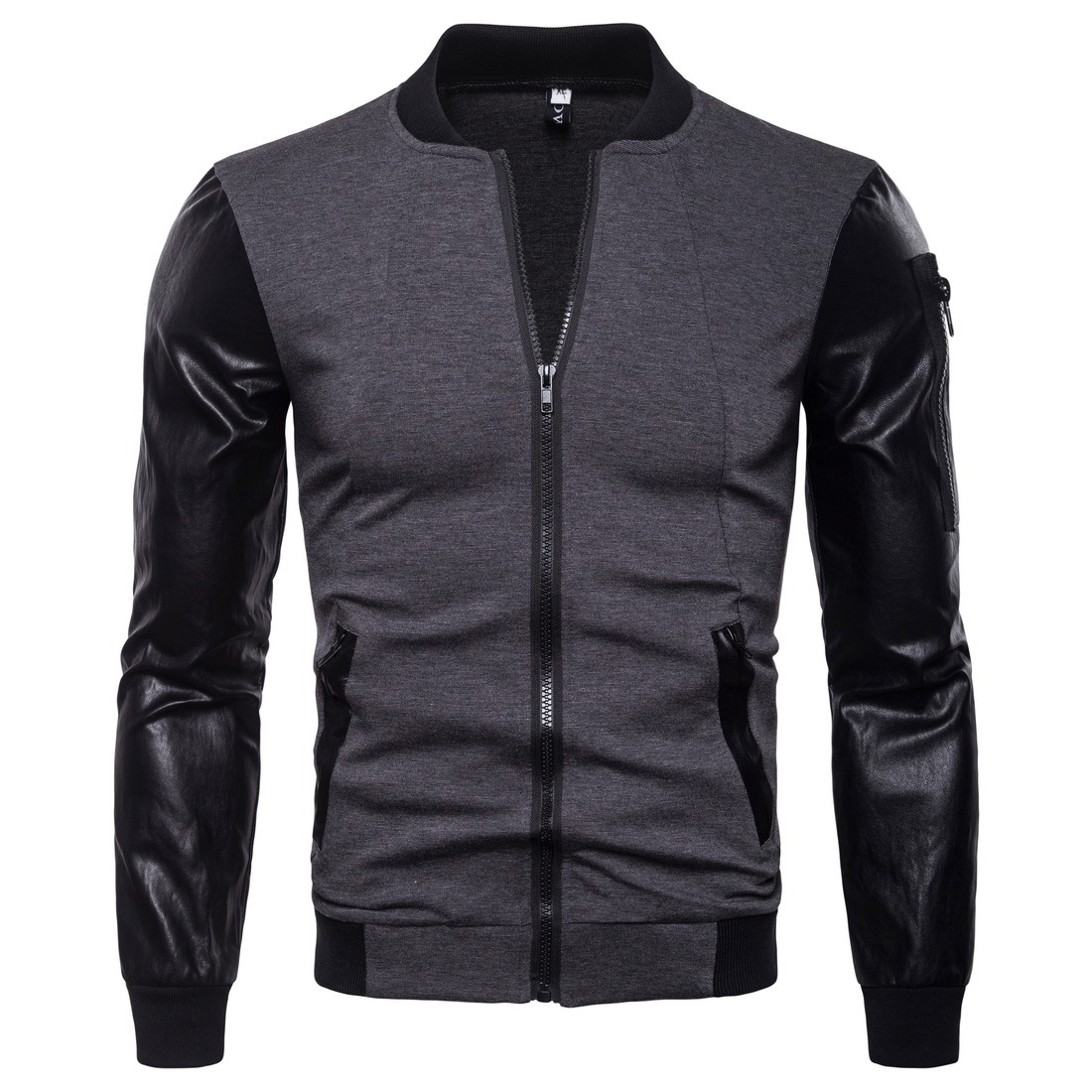 Features: stand-up collar, color matching