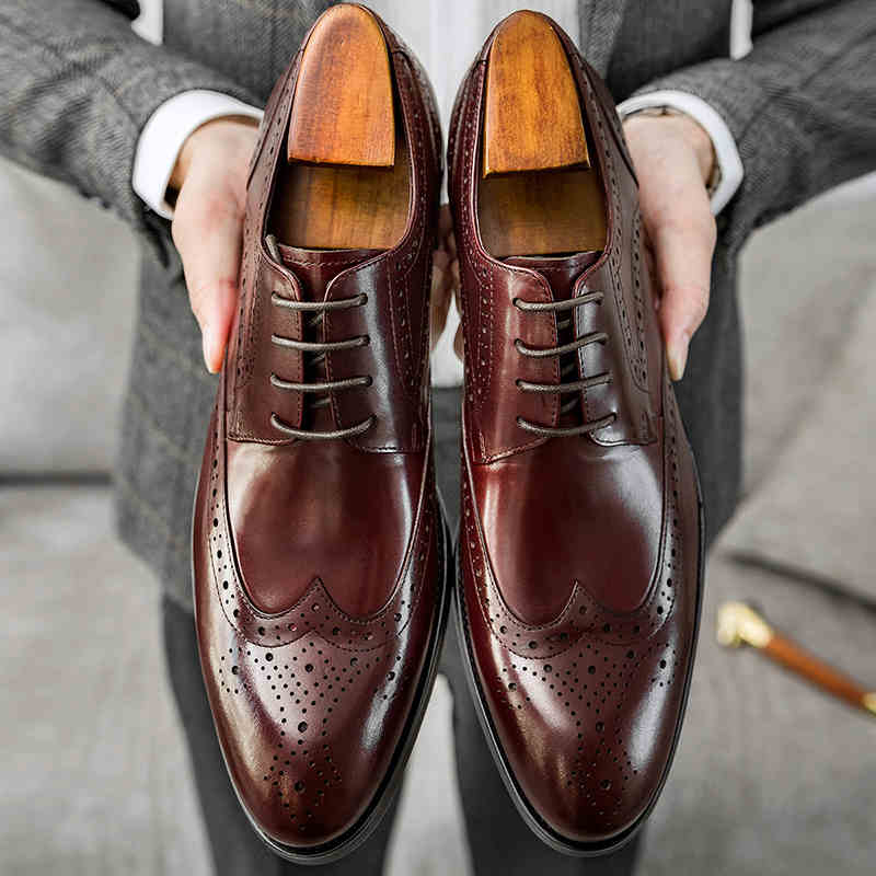Brogue Men's Leather Pointed Handmade Leather Shoes