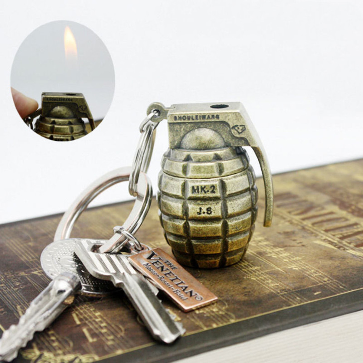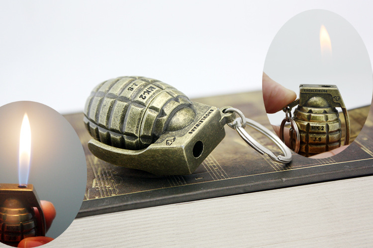 Bronze Grenade Hanging Buckle Flame Lighter Creative Personality