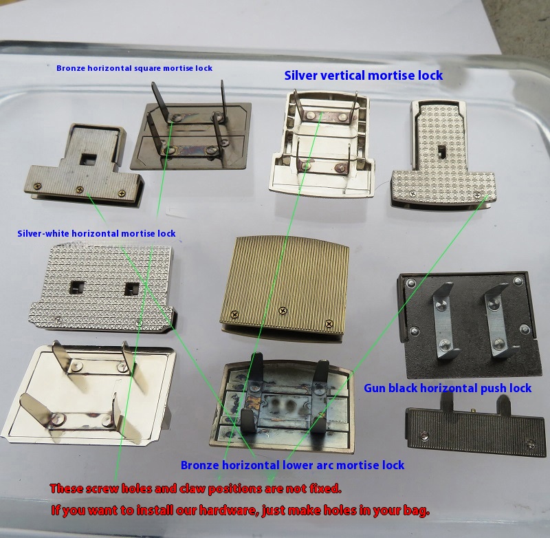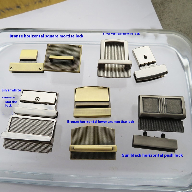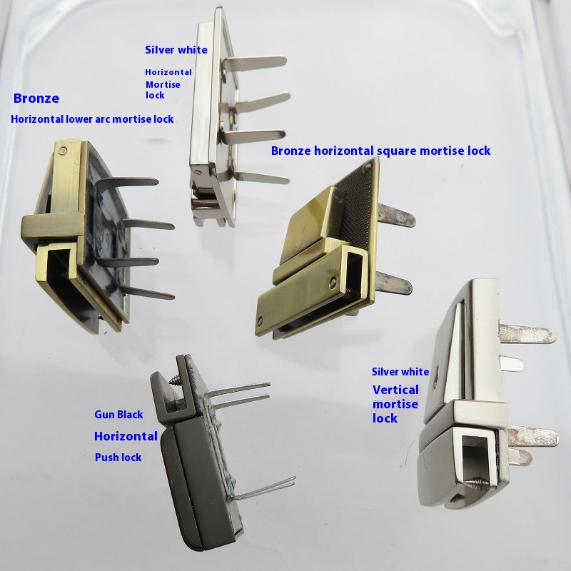 Color: 1 set of bronze cross Square Mortise lock, 1 set of bronze horizontal lower arc mortise lock, 1 set of silver white vertical mortise lock, 1 set of silver white horizontal mortise lock, 1 set of gun 10 Plug Power Bar Push Lock