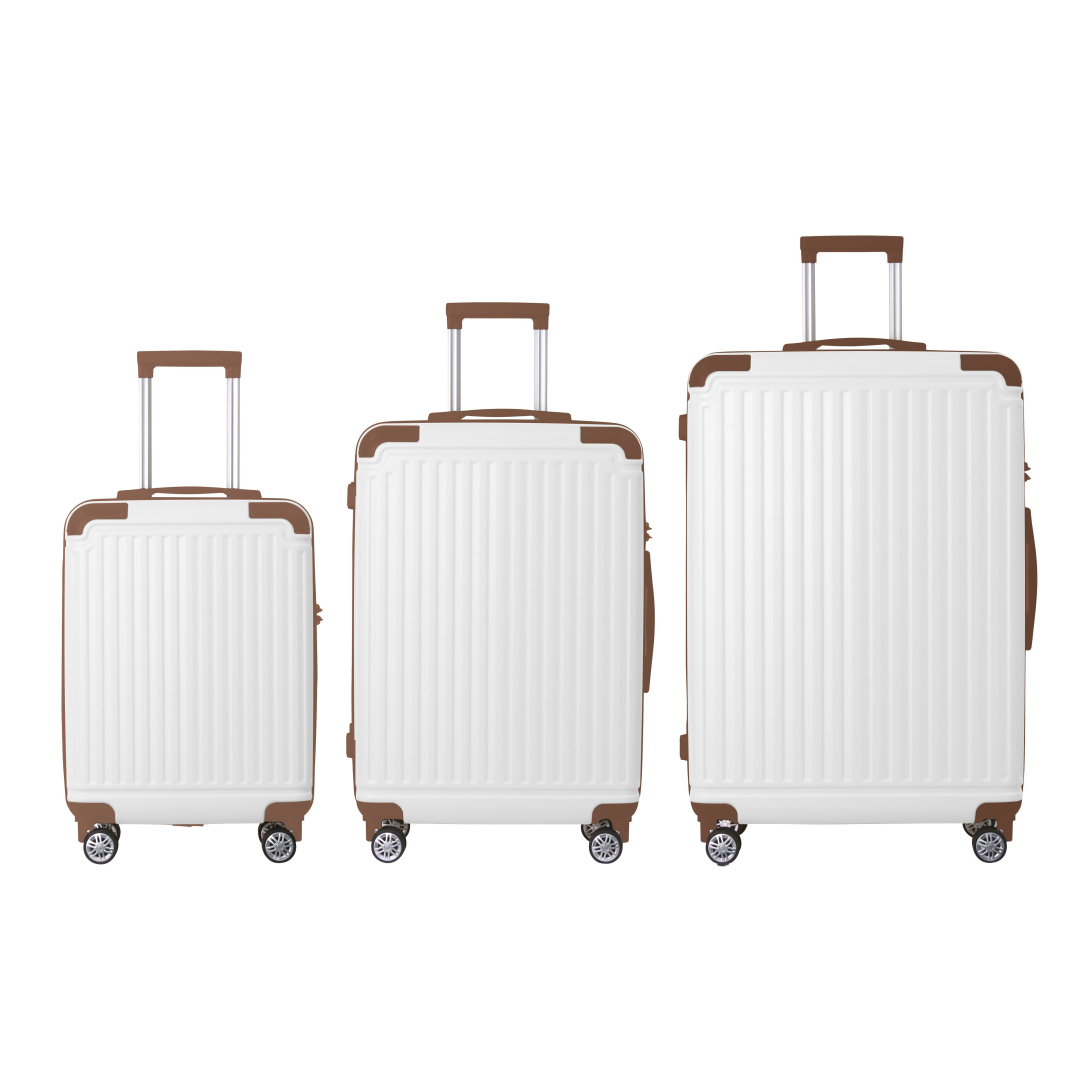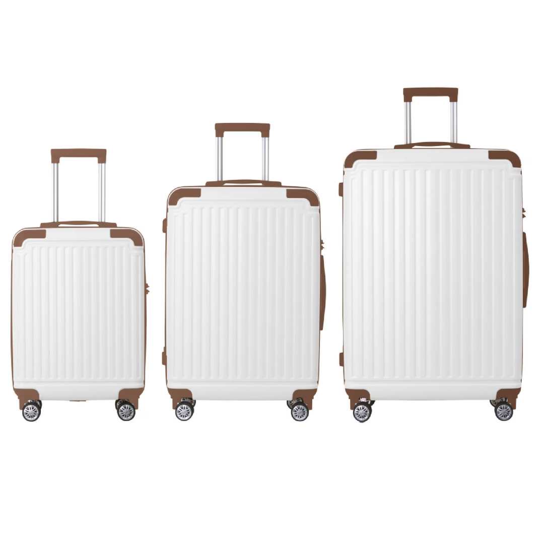 Product Name: Brown 3-Piece Premium ABS Luggage Set-20", 24", and 28" Suitcases with Multi-Position Handle, Silent Spinner Wheels, and TSA-Approved Lock-Durable, Stylish, and Spacious Travel Gear