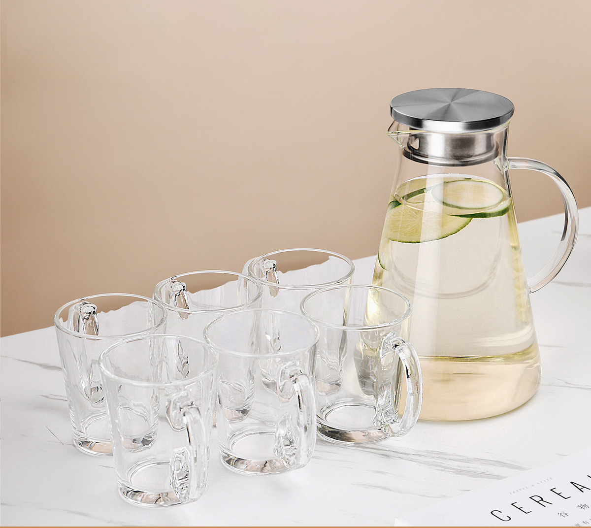A:Six amber handle cups