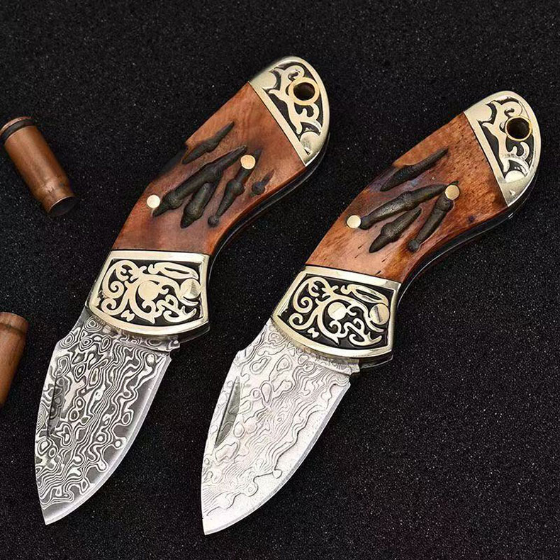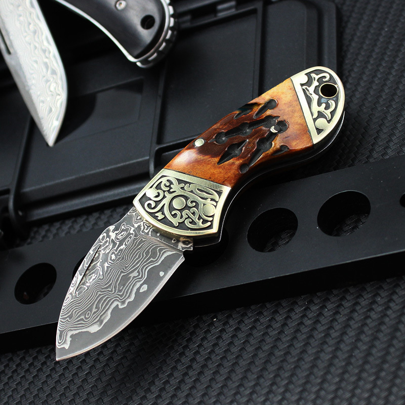 Handle: dyed brown yellow cattle bone+carved pure brass ten colored shellfish