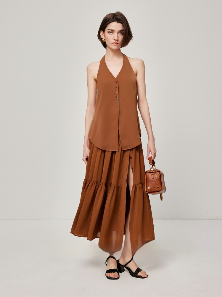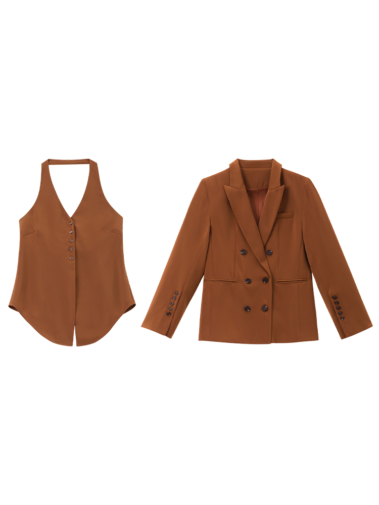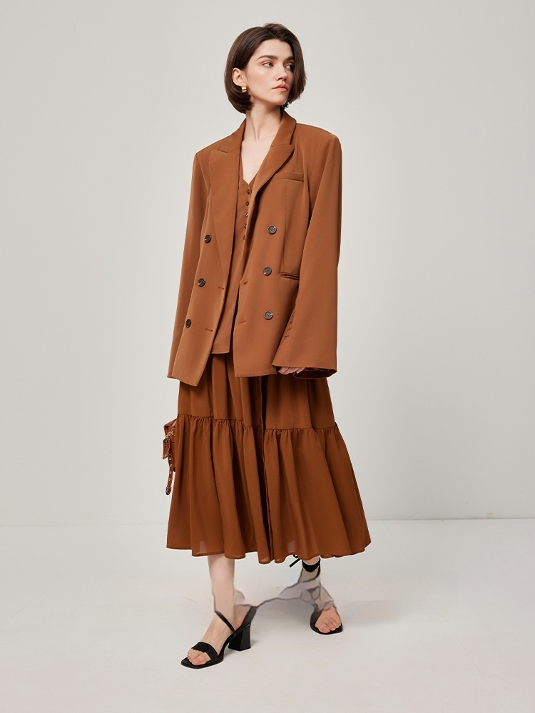 Color: skirt caramel, suit jacket caramel, vest caramel