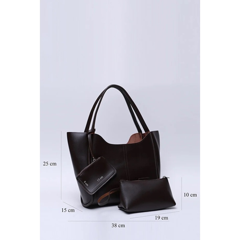 Brown SHK108 Faux Leather Women Hand And Shoulder Bag With Wallet And Makeup Bag