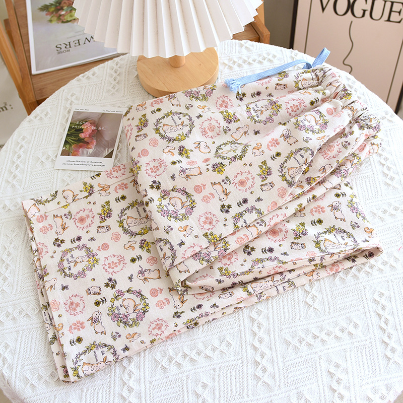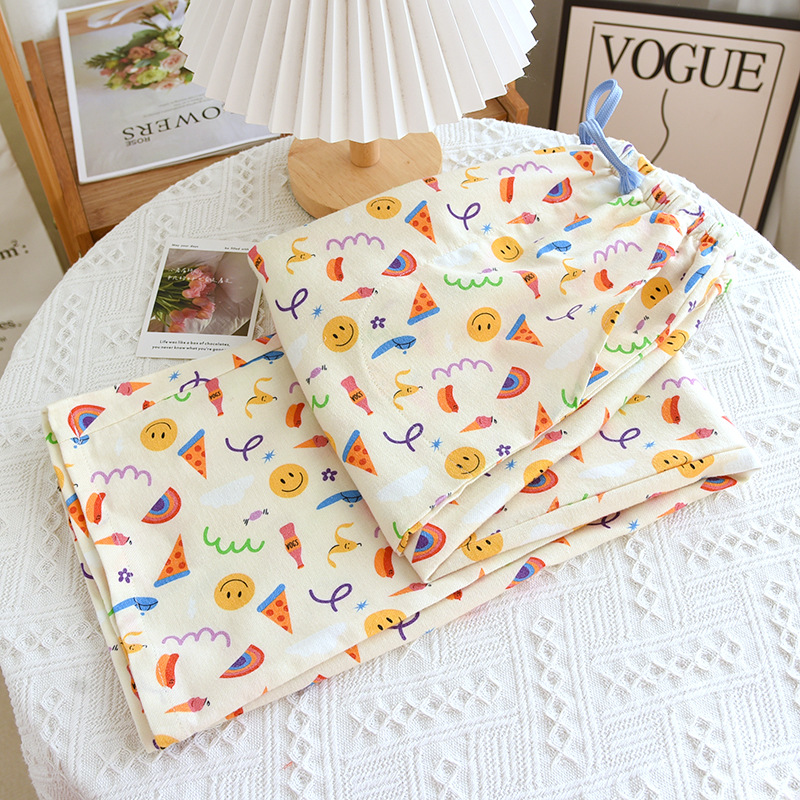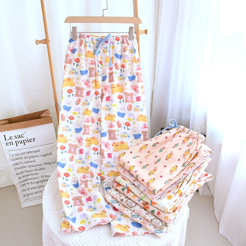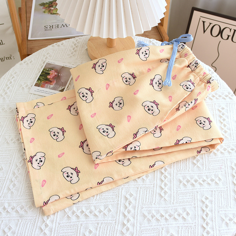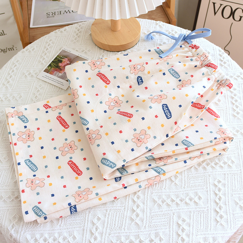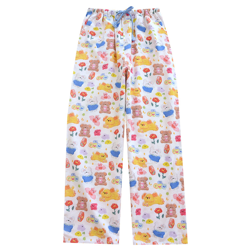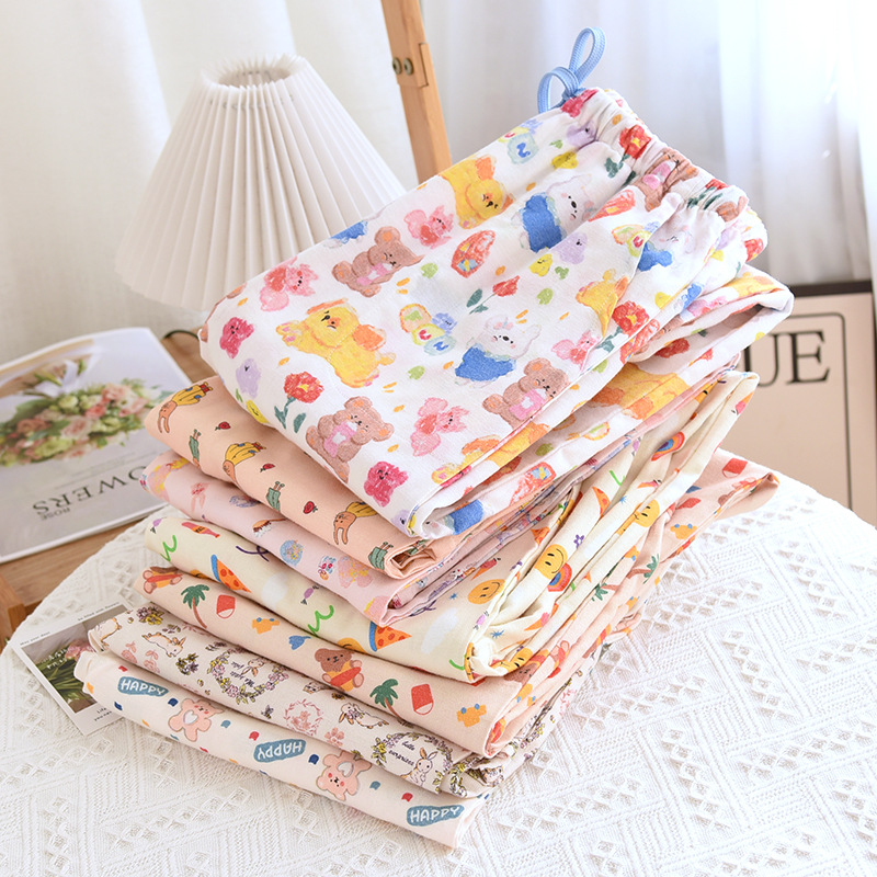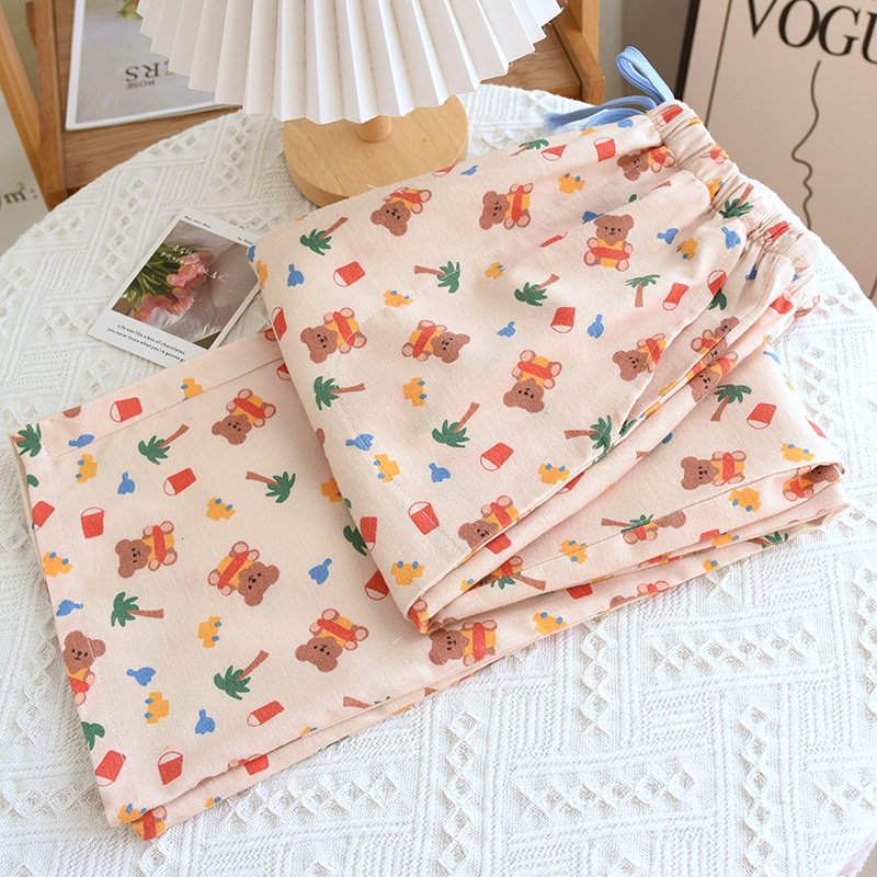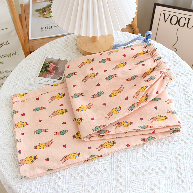 Brushed Flannel Loose Pure Cotton Cartoon Printed Pajama Pants For Women