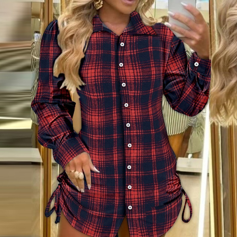 Brushed Flannel Plaid Long Sleeve Shirt Dress
