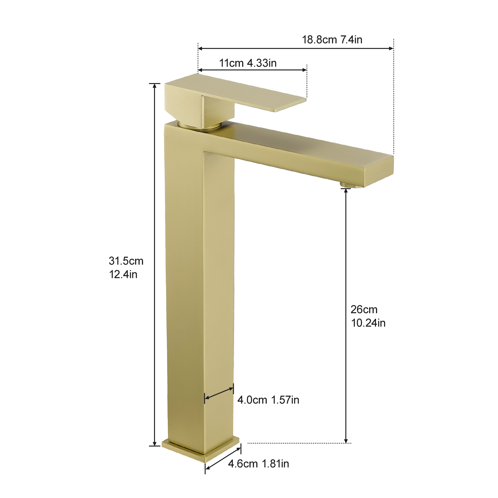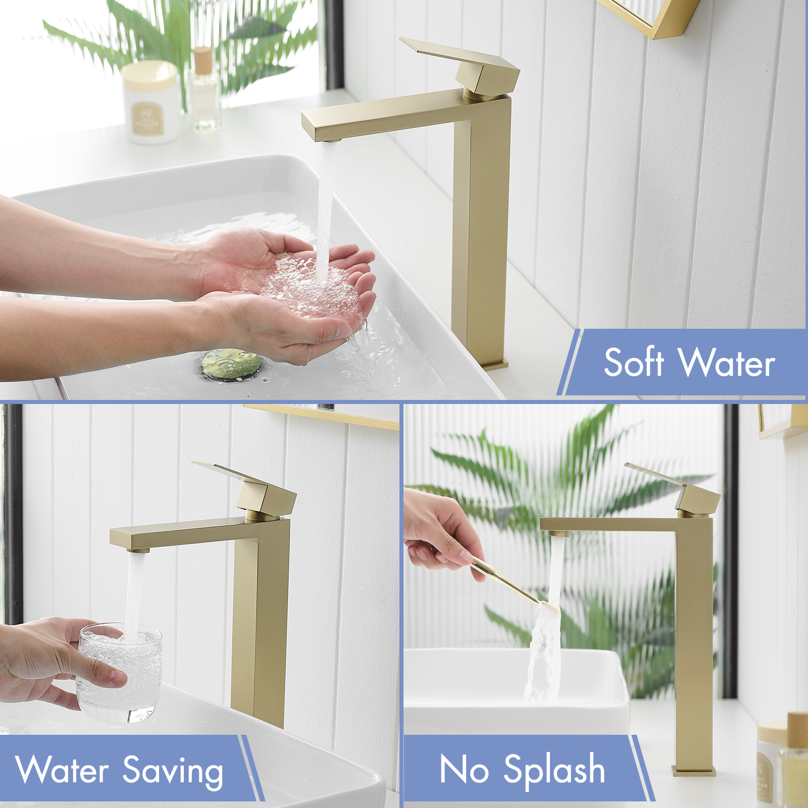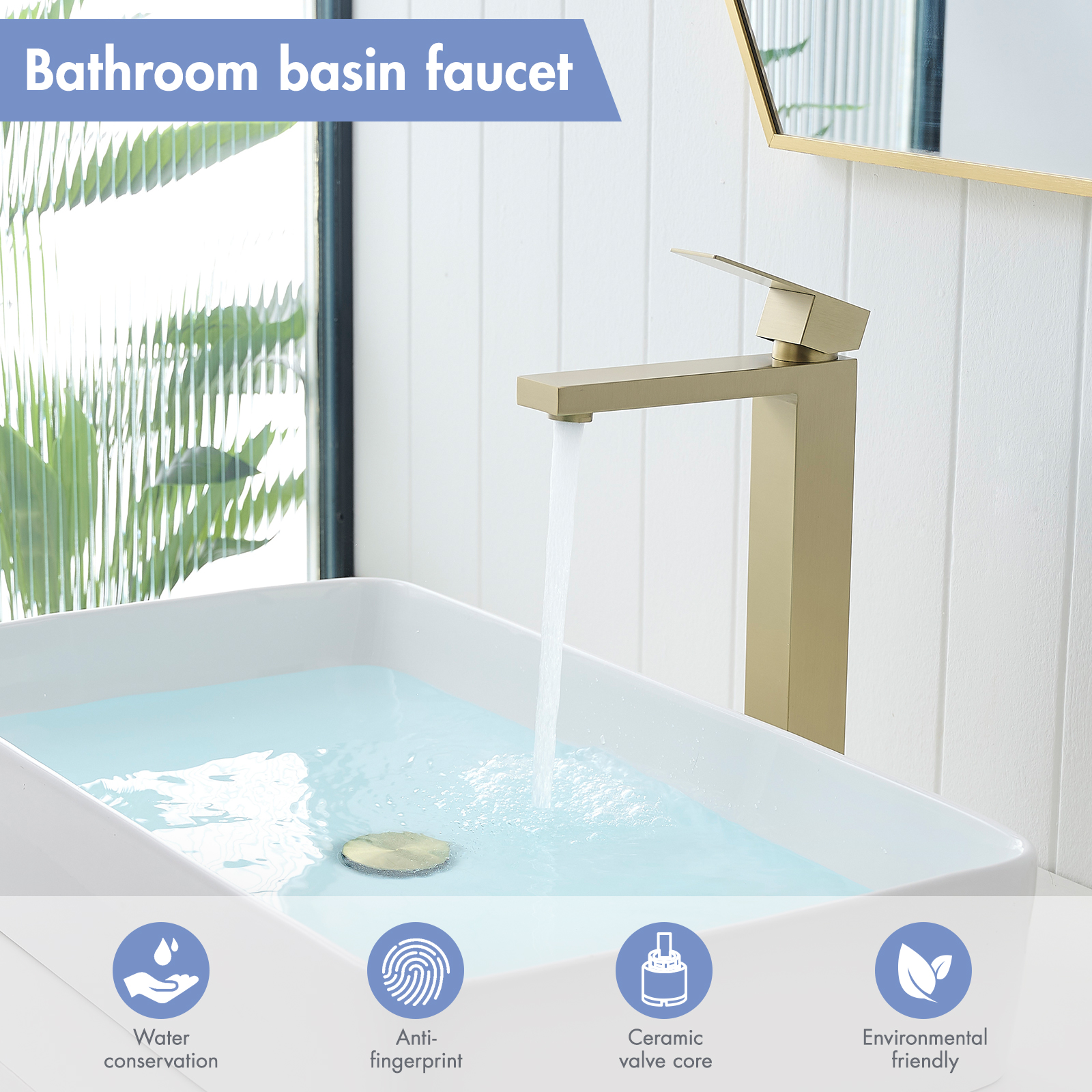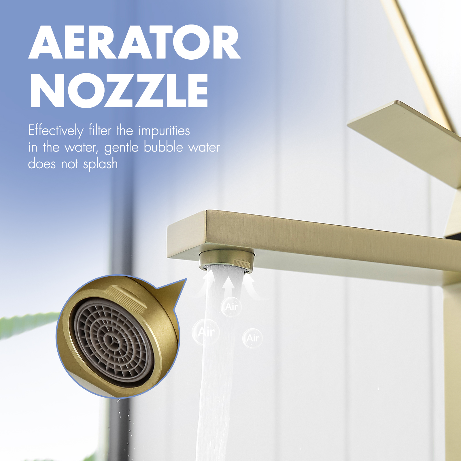 • Brushed Gold Faucet for Bathroom Sink, Single Hole Bathroom Faucet