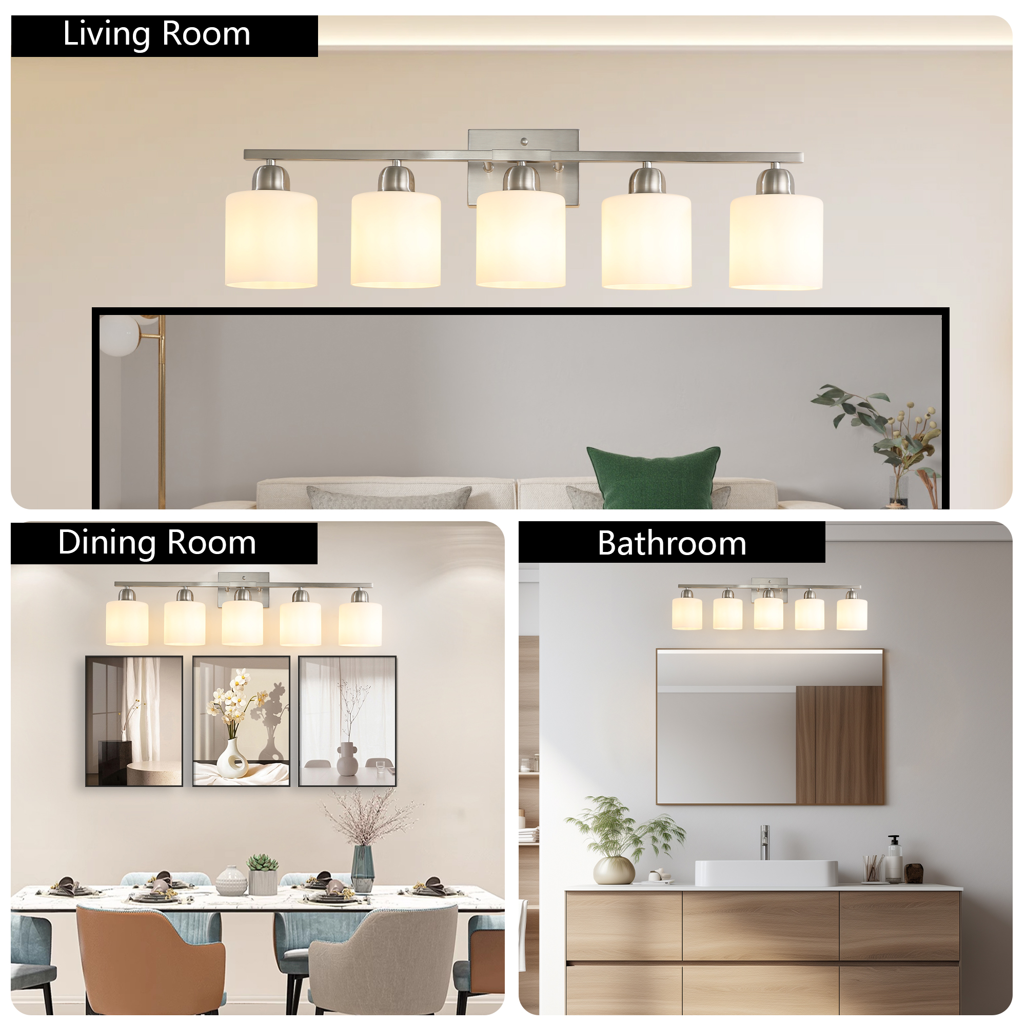 Milky white frosted glass lampshade: Creates bright and soft atmosphere, eye-friendly perfect for the whole family. It is also a great choice for decorating home cornersETL-Certified Ceramic E26 Socket: Vanity lights for bathroom is compatible with any E26 base bulb, including incandescent, CFL, halogen, and LED bulbs (max 60 W per bulb, not included). When used with a dimmable bulb and switch (not included), the wall light offers full dimming capability, allowing you to select different bulb styles and control the desired brightnessDouble-Layer Spray Painting Process: This technique applies a thicker, smoother, and more even coating, enhancing the overall appearance of the fixture. It improves durability by making the light more resistant to scratches and maintaining a pristine, refined look. This contributes to a more stylish and polished bathroom designDurable Construction: Bathroom lighting fixtures over mirror features a robust all-metal construction, including a metal securing ring that firmly holds the glass shade in place for long-lasting safety and durability. Additionally, it is built with a sturdy metal arm that remains straight and secure during use or transport, ensuring reliable performance over time