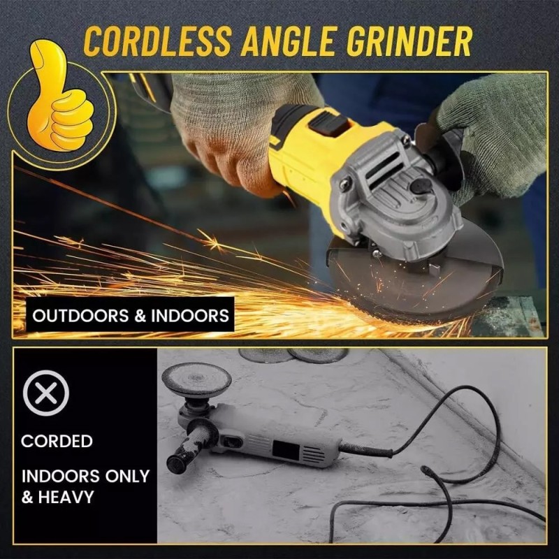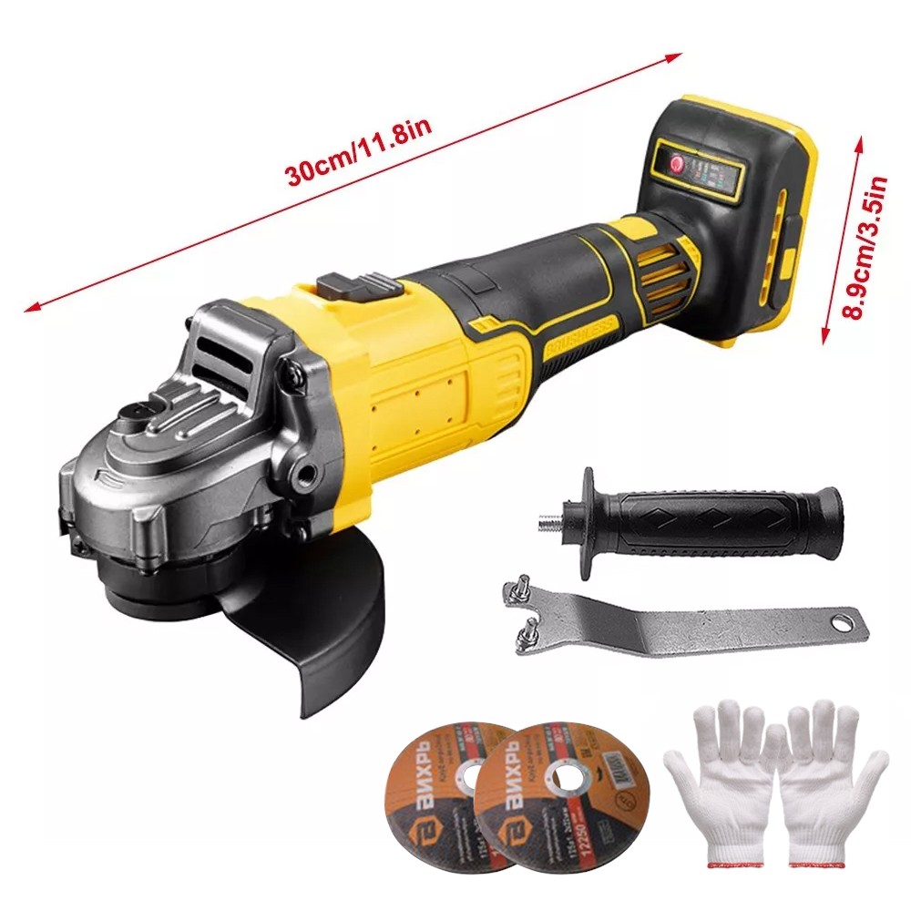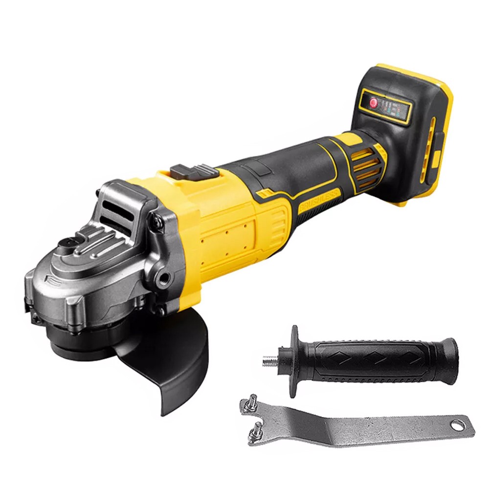 brushless angle grinder comes with one piece of 125 mm diameter wheel guard. Suitable for 115/125 mm cutting wheel or grinding wheel. The angle grinder suitable to cut, saw, sand and grind metal, wood, concrete, stone, steel, masonry, tile. This cordless angle grinder is ideal for a variety of DIY tasks including cutting tile, grinding metal, sanding, polishing, sharpening and more.