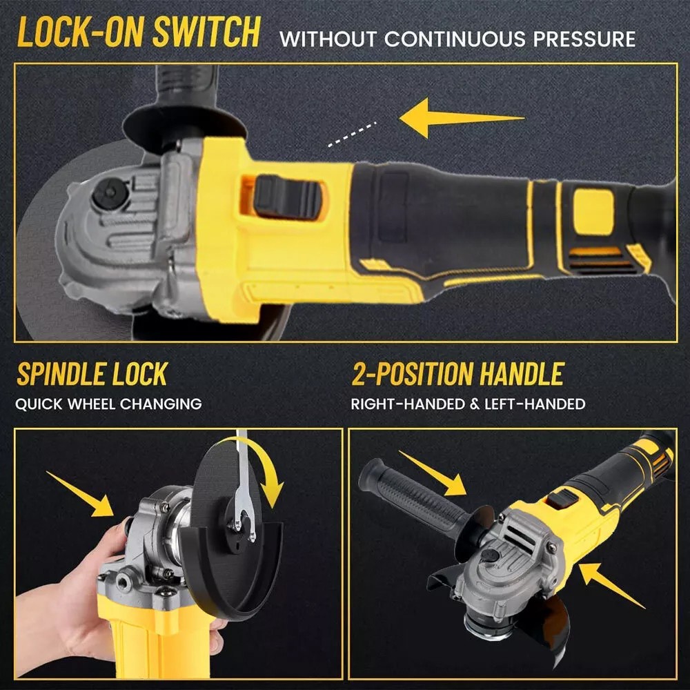 angle grinder features brushless motor that eliminates carbon brushes, enabling the motor to run cooler for longer tool life than brushed models. The high-performance motor also delivers a high working speed at 11000RPM to make your work more efficient.