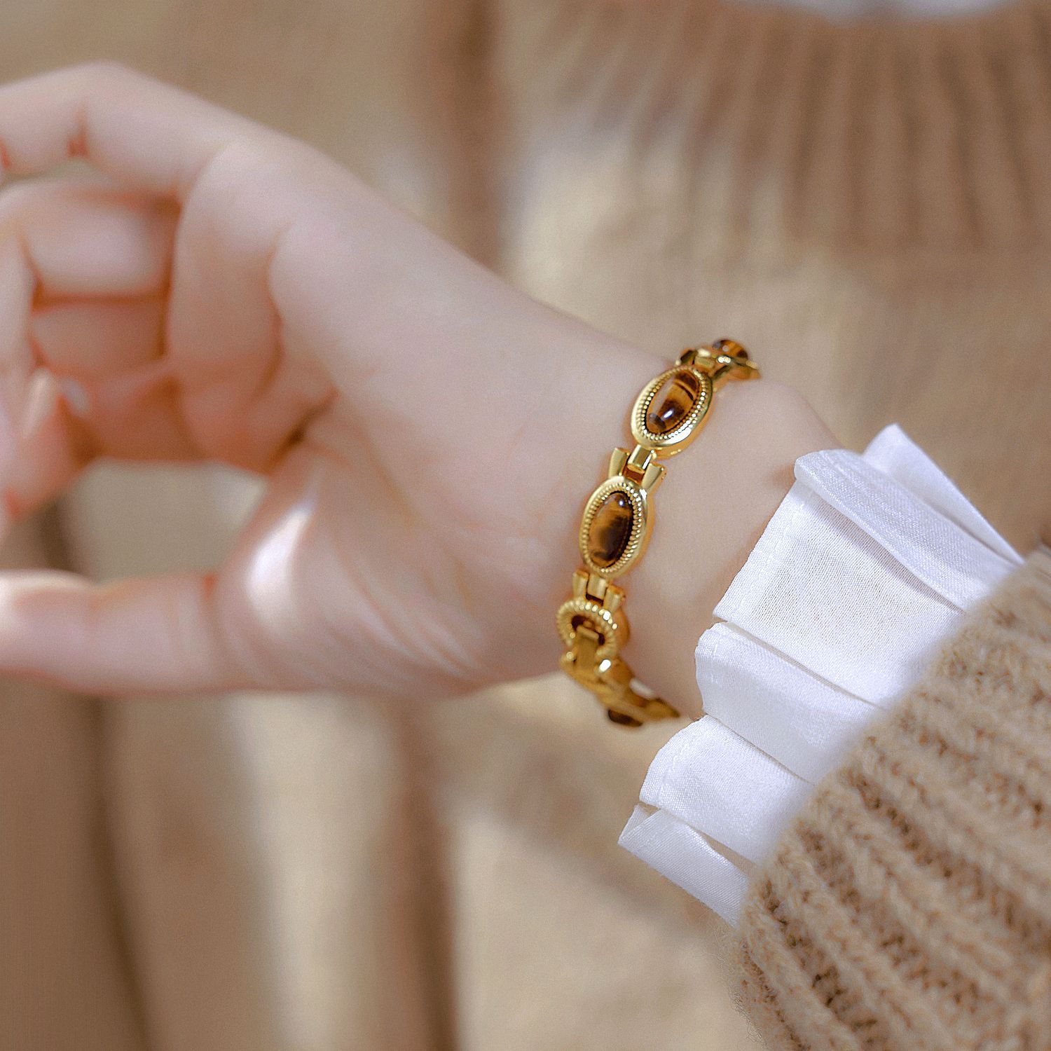 Color: Tiger Eye gold white, tiger eye champagne gold
