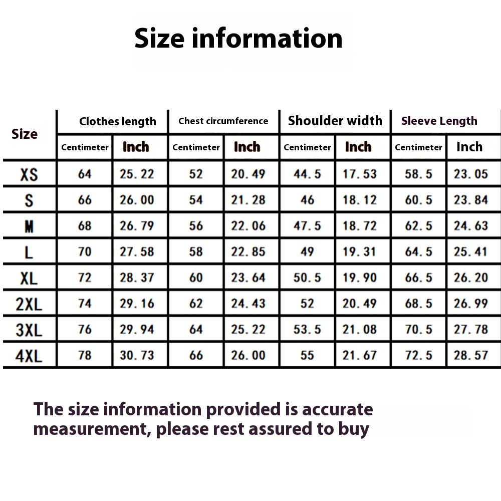 1. Asian sizes are 1 to 2 sizes smaller than European and American people. Choose the larger size if your size between two sizes. Please allow 2-3cm differences due to manual measurement. 2. Please check the size chart carefully before you buy the item, if you don't know how to choose size, please contact our customer service. 3.As you know, the different computers display colors differently, the color of the actual item may vary slightly from the following images.