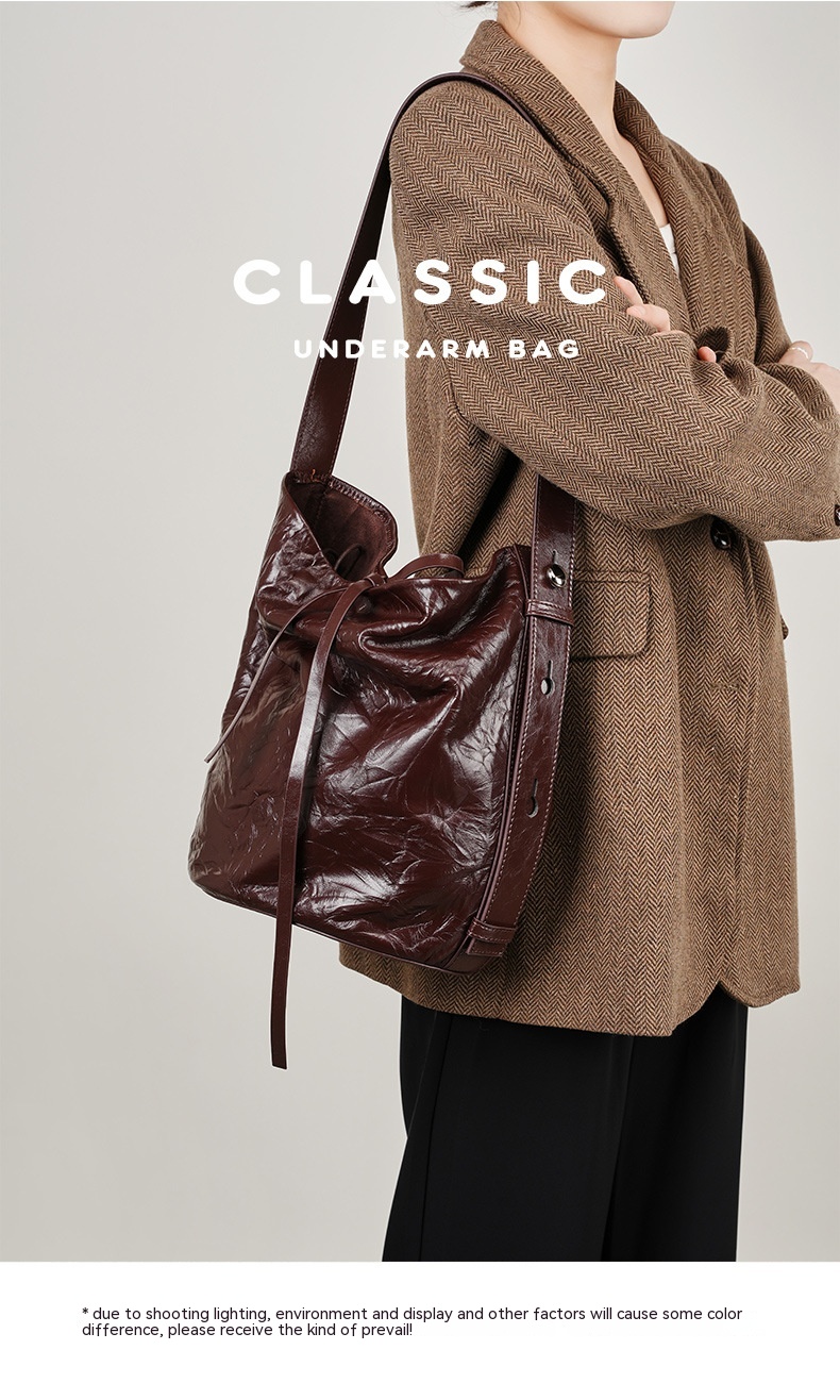Bucket Bag Fashion Special-interest Hand Grip Pattern Leather One-shoulder Crossbody Tote