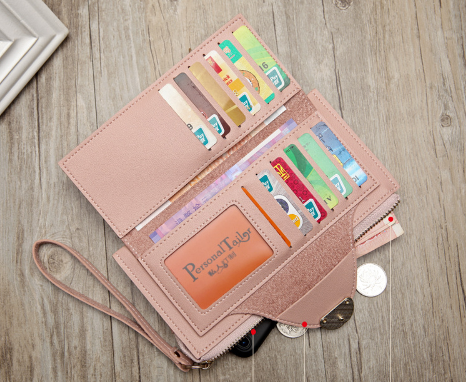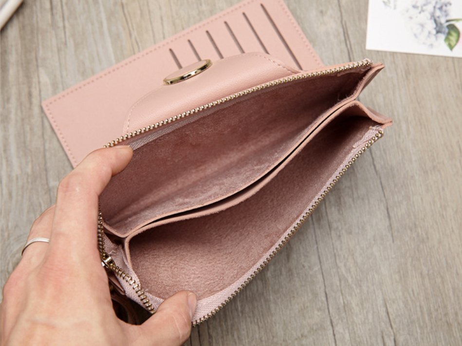 The internal structure of the small bag: photo position, zipper, banknote clip, card position, dark space, change position, document position