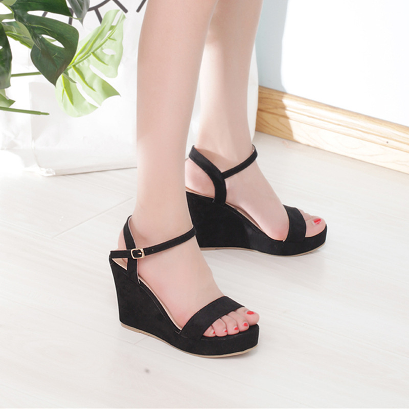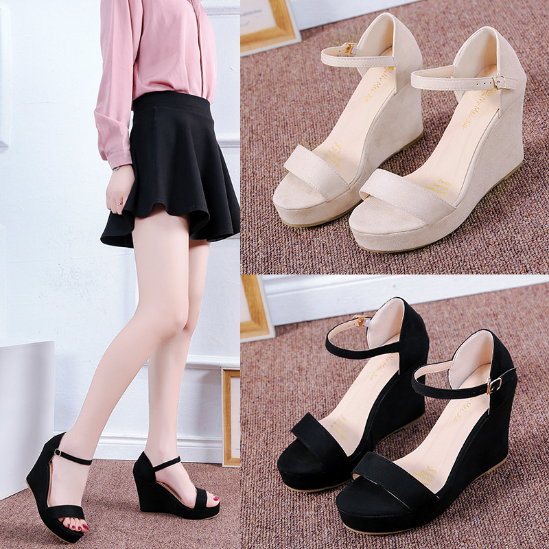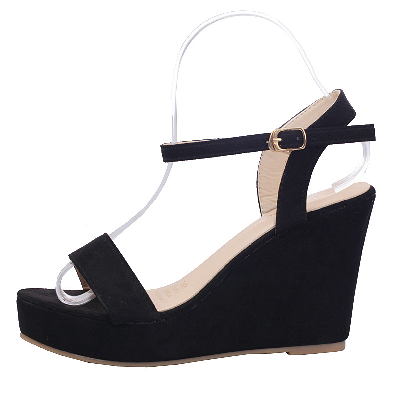 Popular elements: shallow mouth, sponge cake heel, buckle, waterproof platform