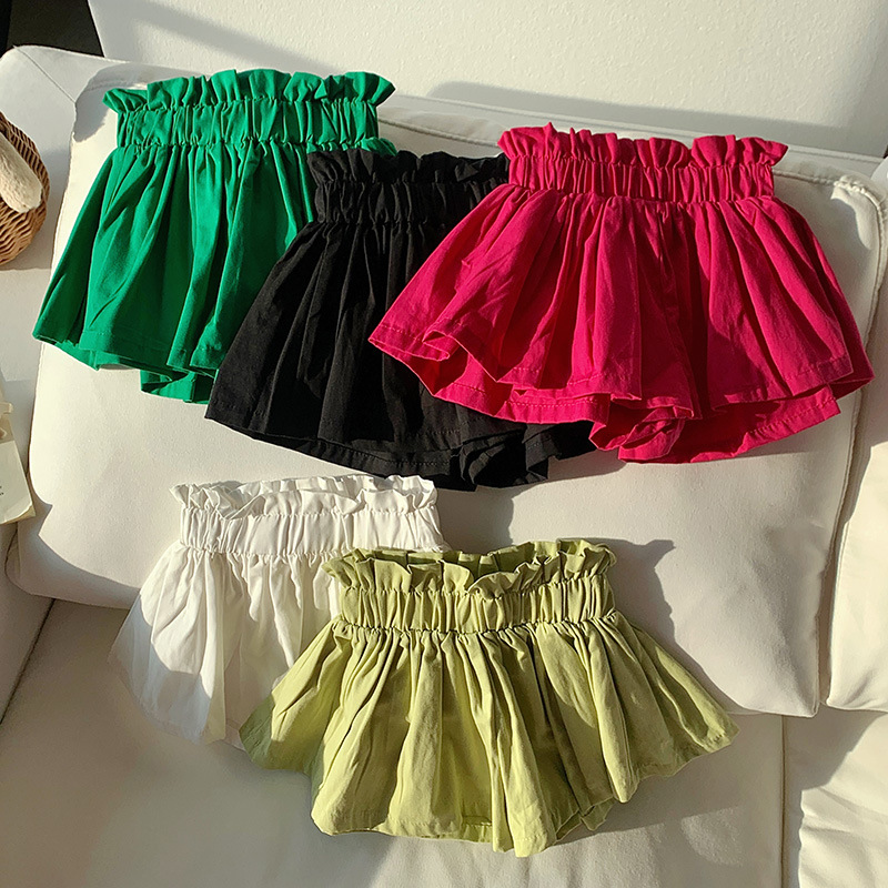 Bud Shaped Waist Cotton Women's Shorts Multi-color Woven
