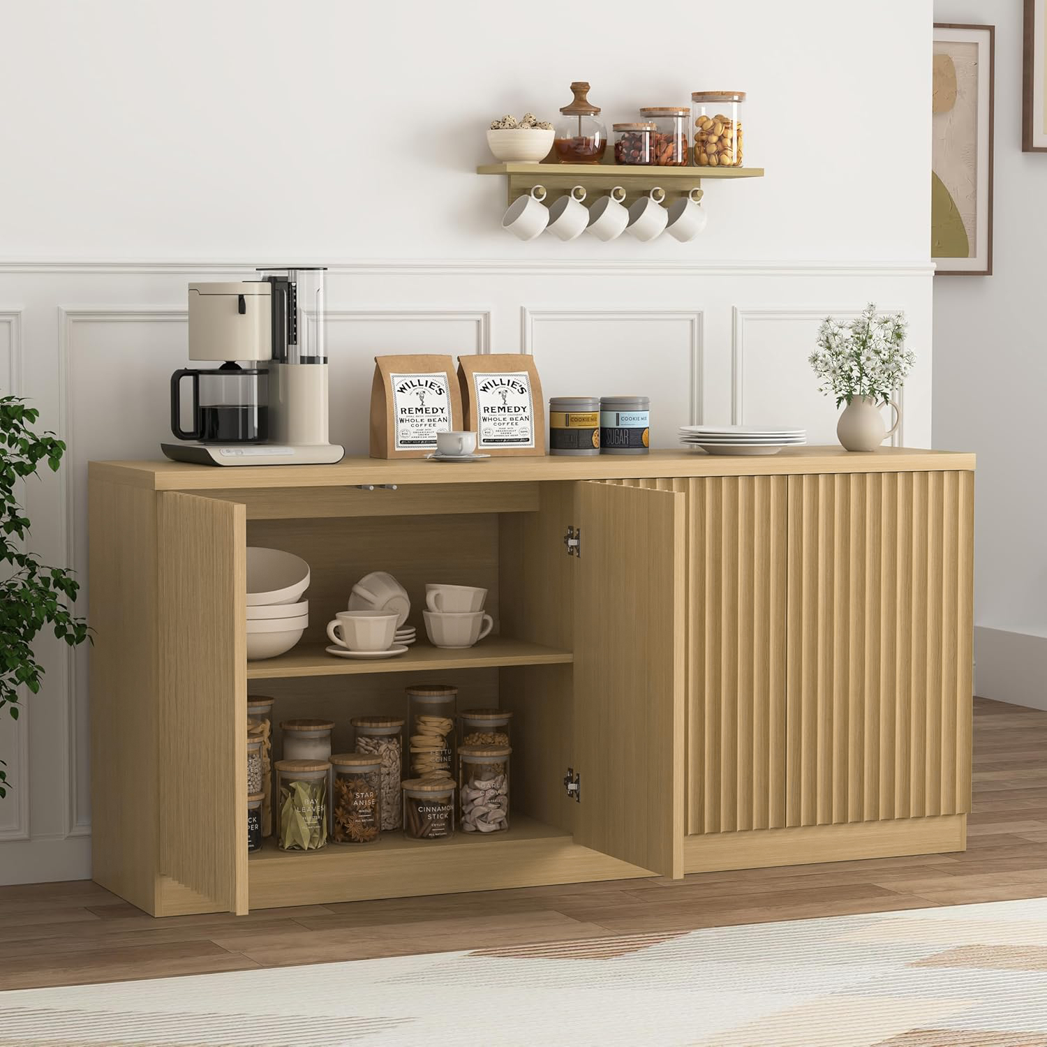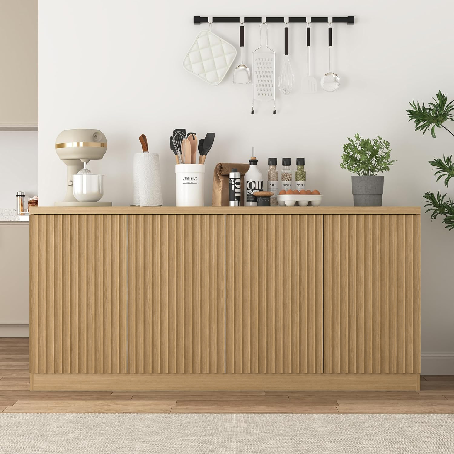 Product Name:Buffet Cabinet with Storage, 62.60" Sideboard Cabinet with 4 Doors & Shelves, Wooden Kitchen Coffee Bar Credenza Storage for Living Room, Hallway Natural