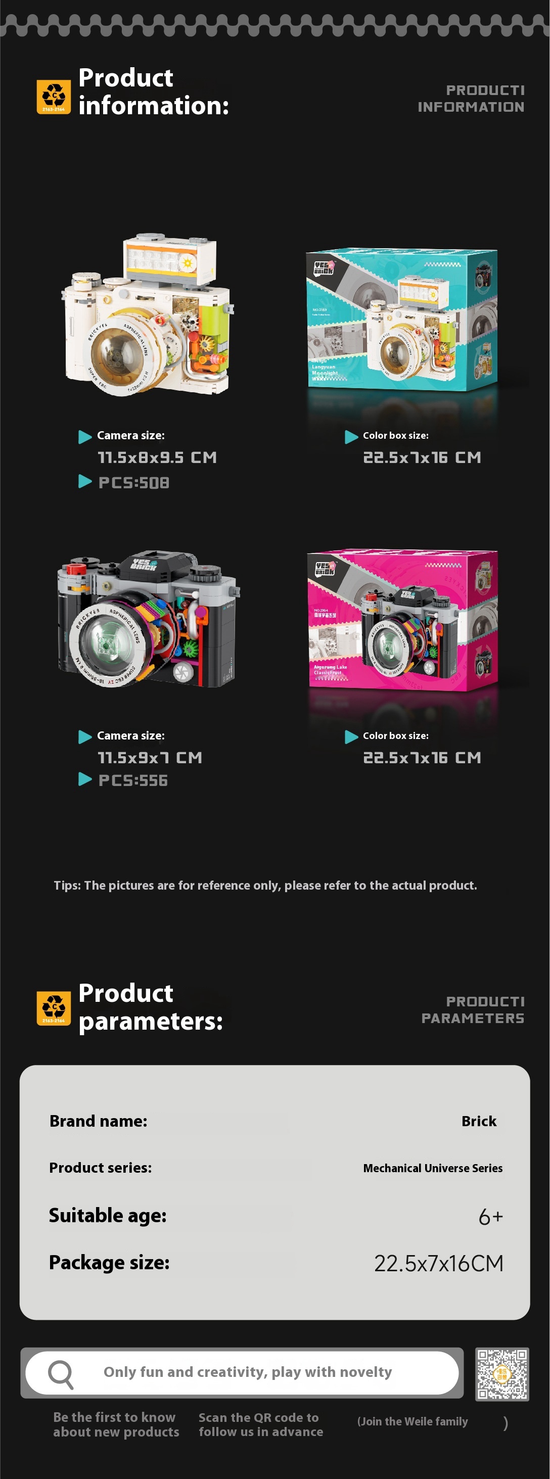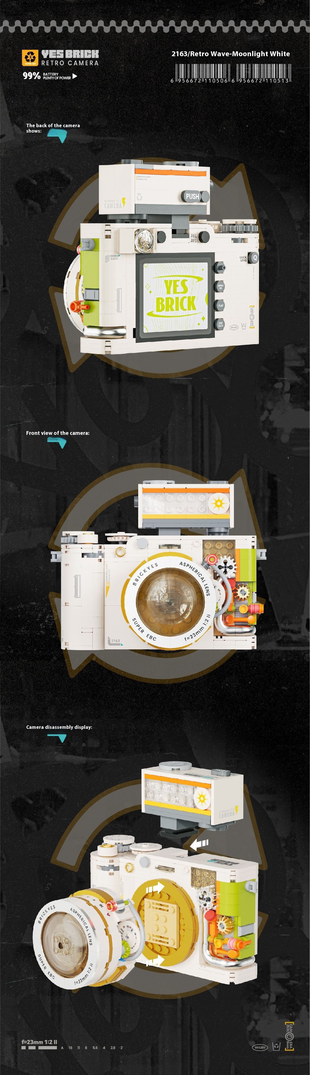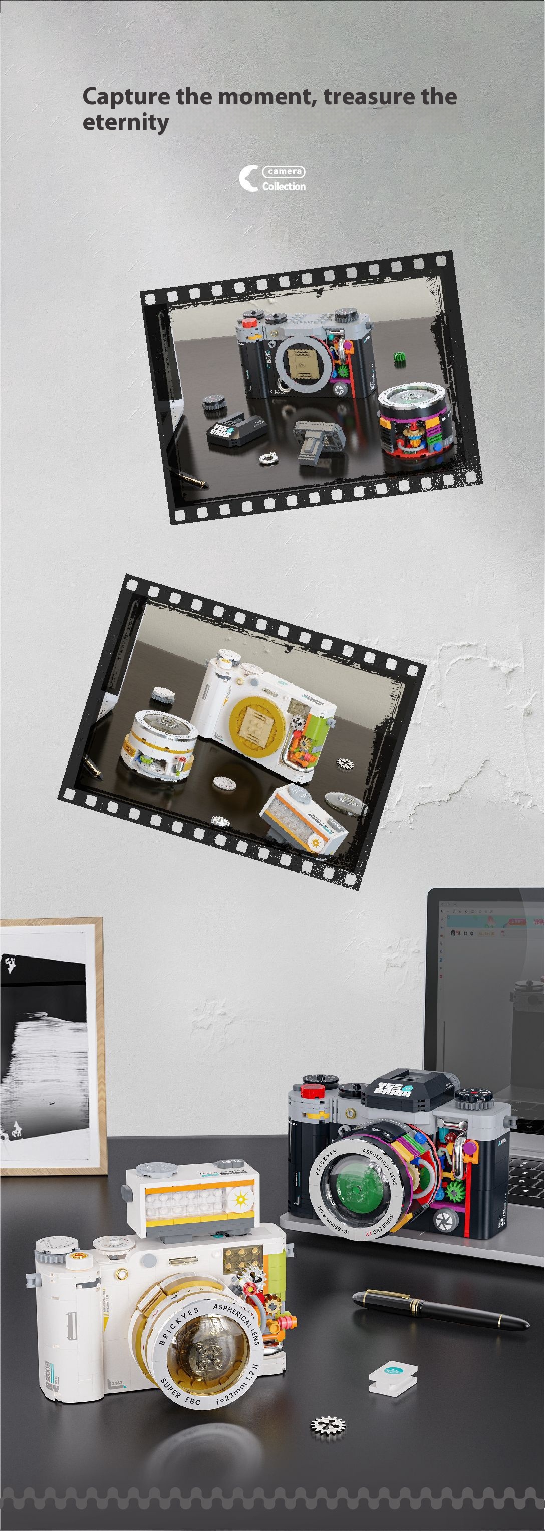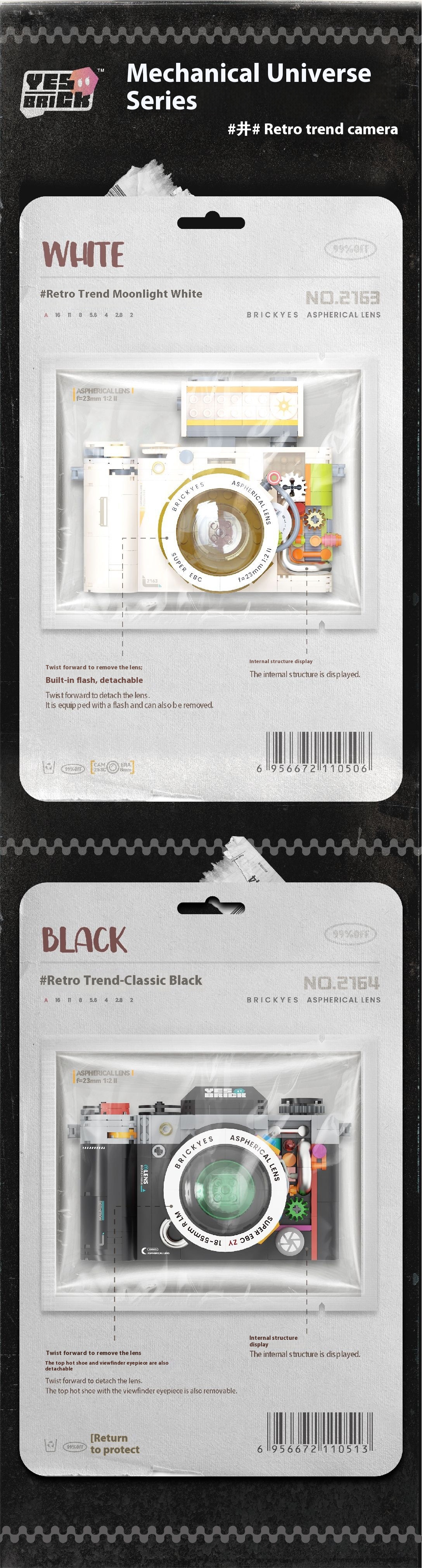 Color: 2163 retro camera-Moonlight White 508pcs,2164 retro camera-classic black 556pcs