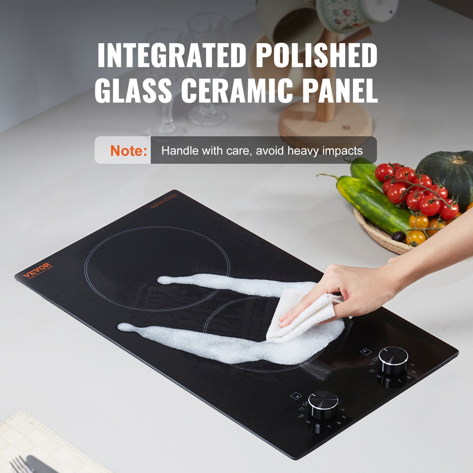 2 Burners for Multi-Pot Cooking: The stovetop electric cooktop has 2 separate heating zones, allowing you to cook different dishes quickly at the same time. It is compatible with various high-temperature cookware, such as copper pots, cast iron skillets, and stainless steel pots. Cooking with multiple burners simultaneously is more efficient, reducing heat loss.