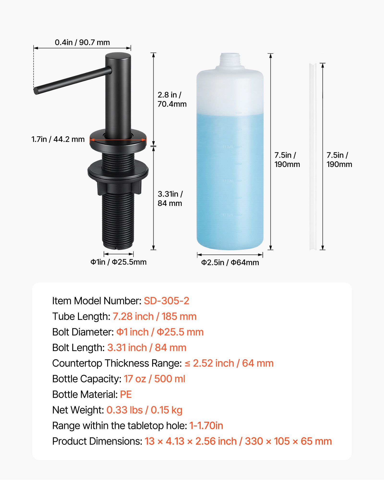 Built In Soap Dispenser For Kitchen Sink Stainless Steel With 17oz Bottle
