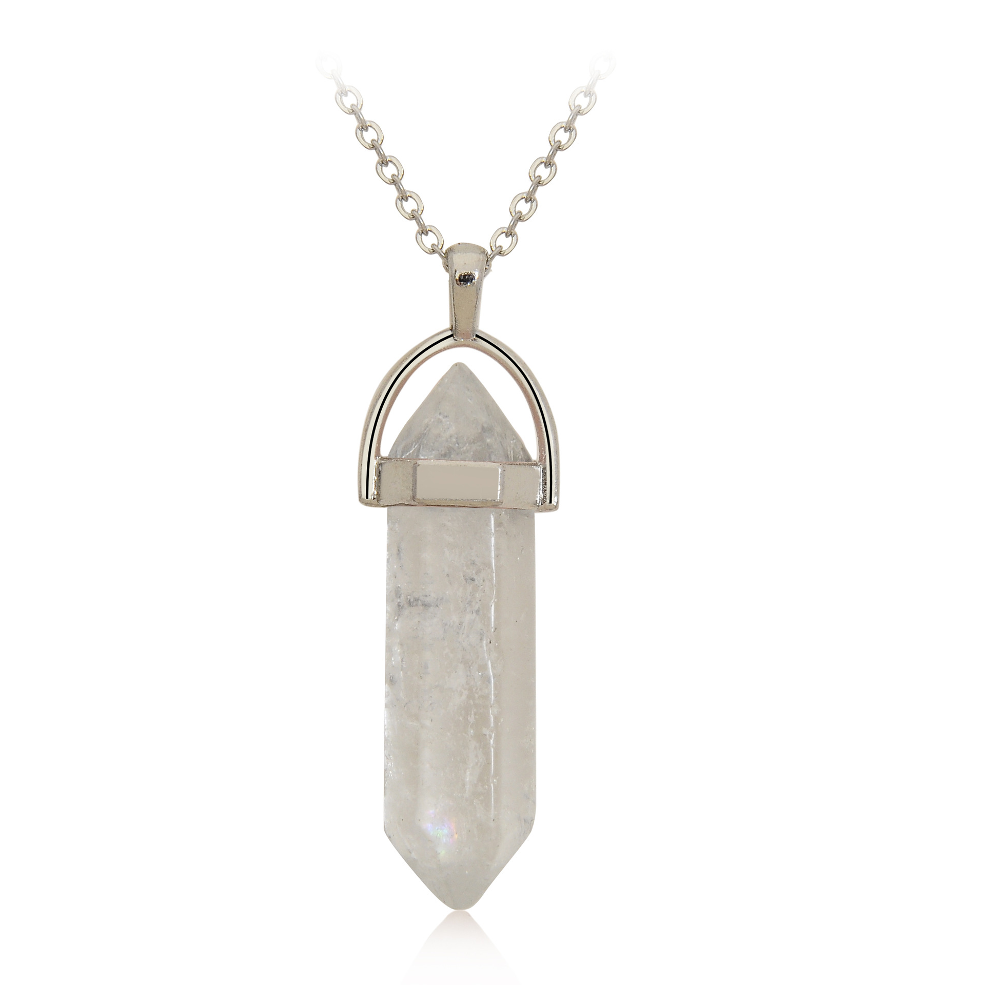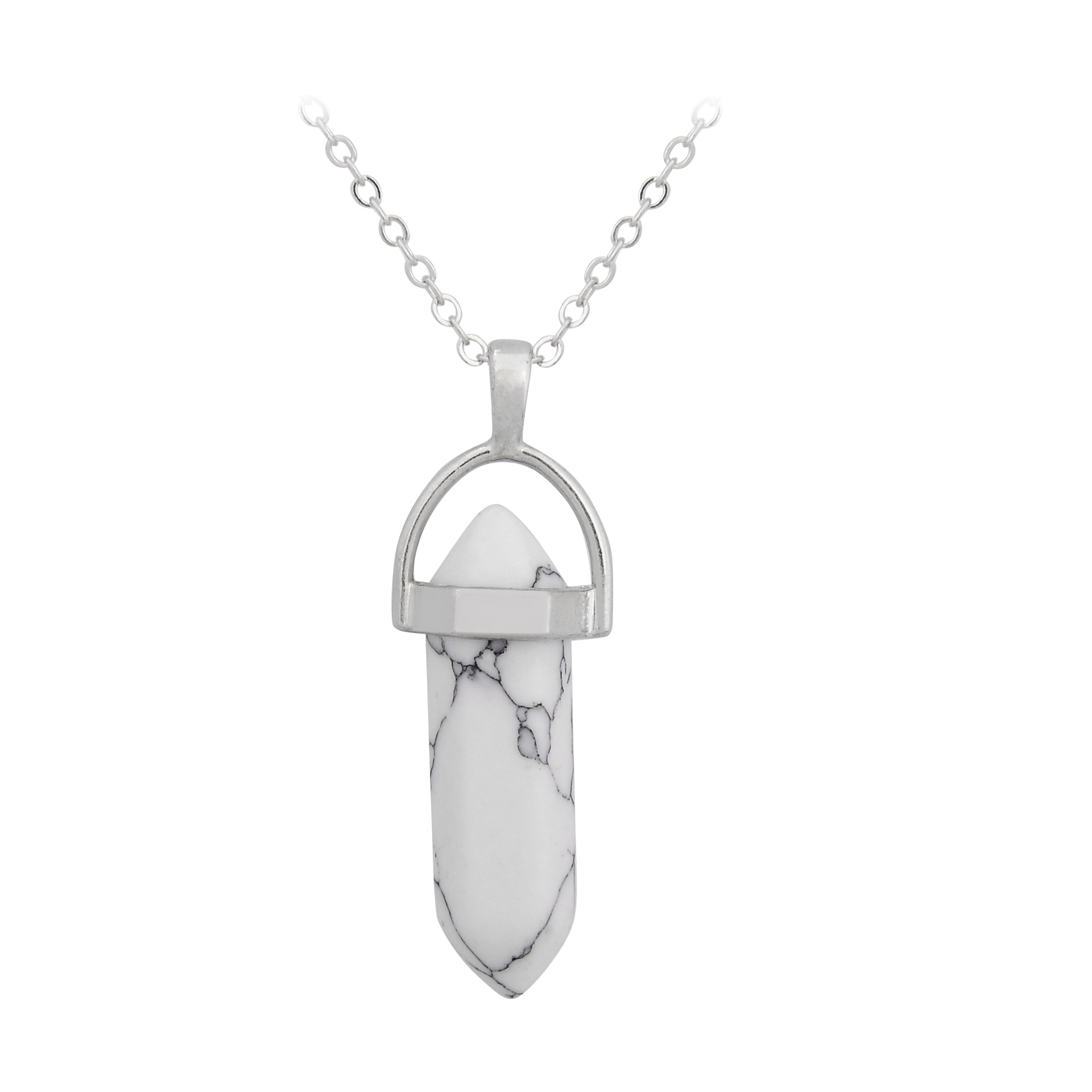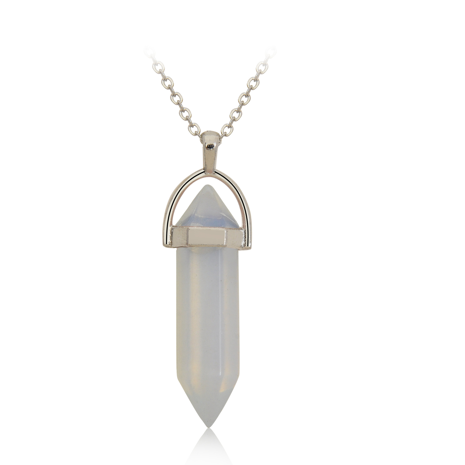 Purity: natural stone hexagonal column + silver chain