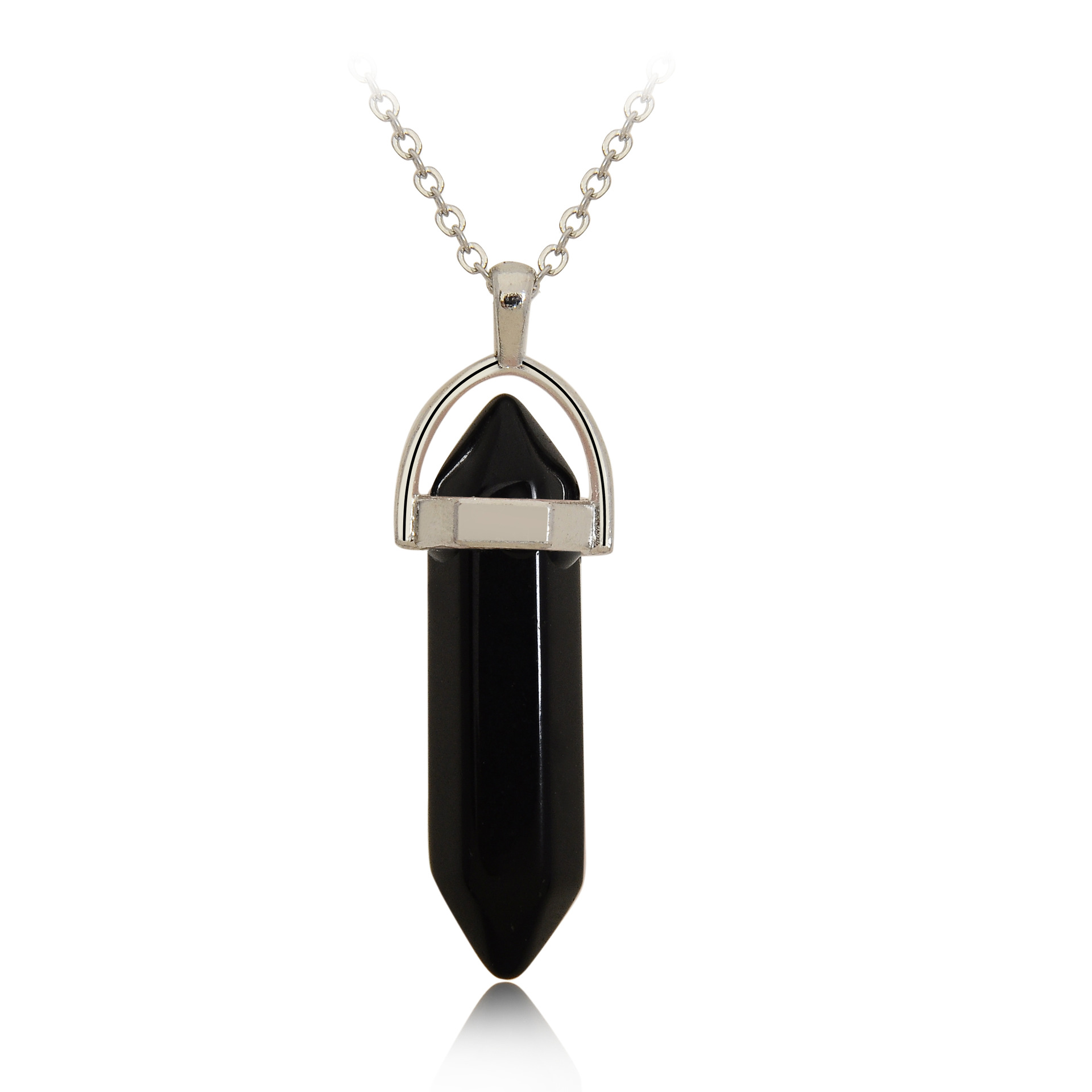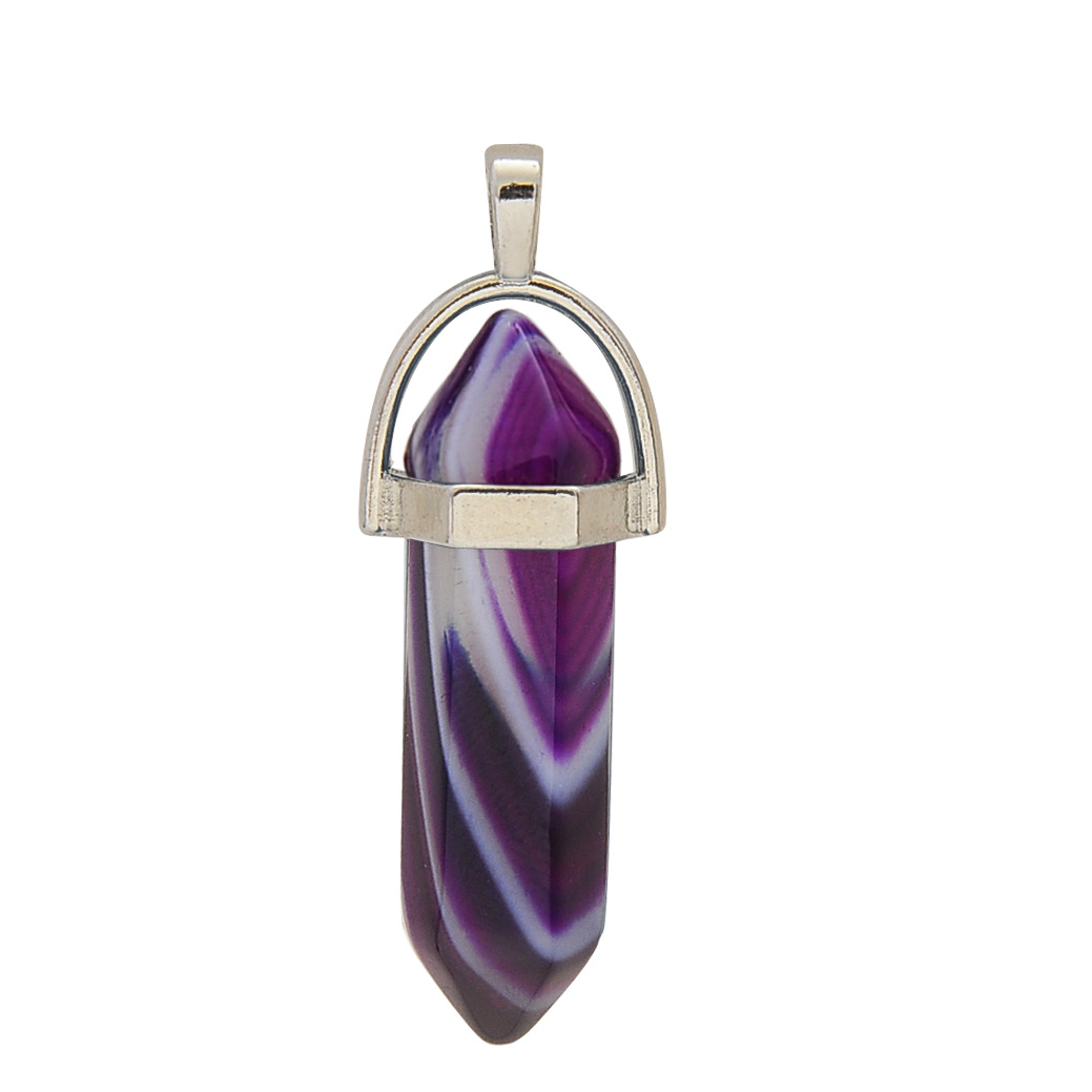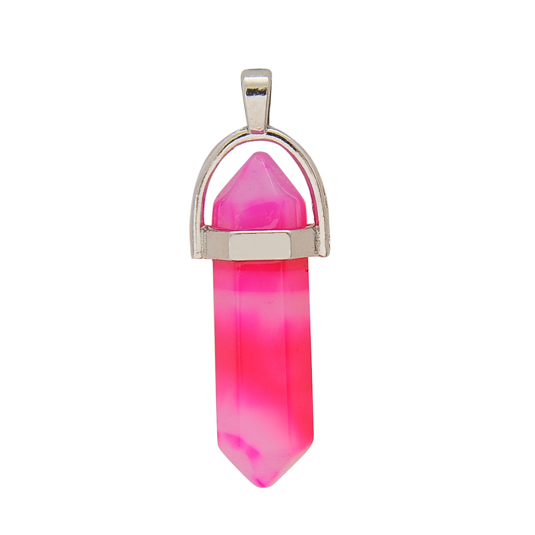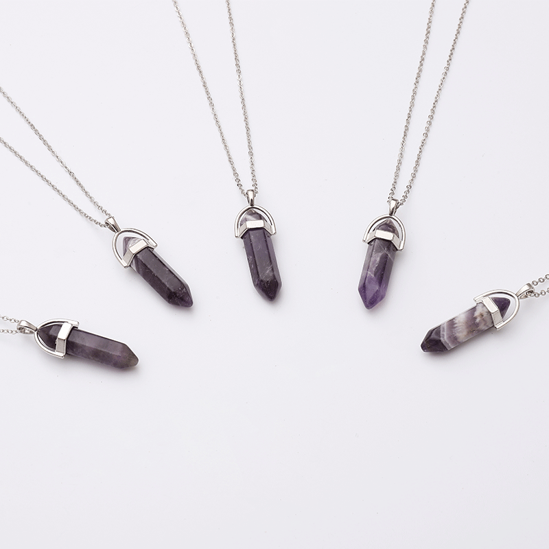 Purity: natural stone hexagonal column + silver chain