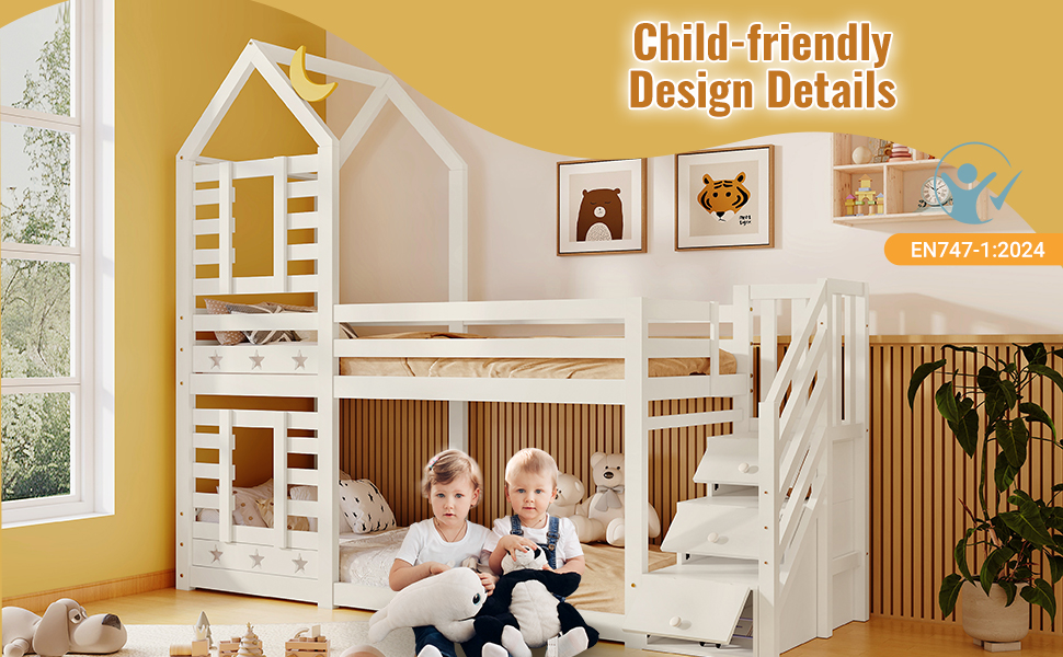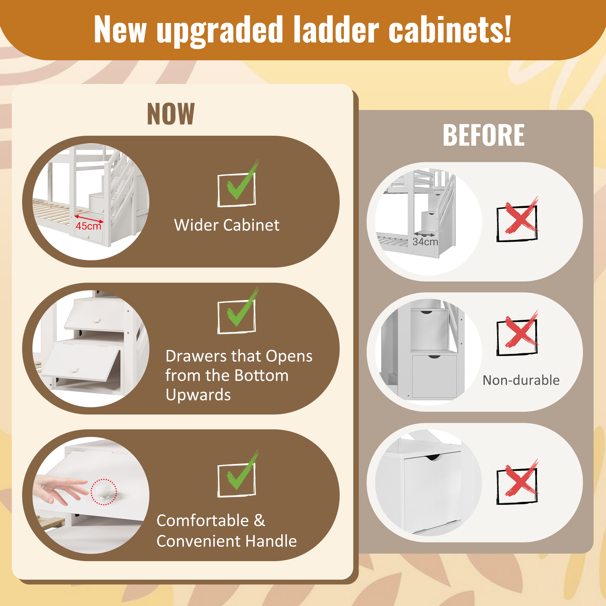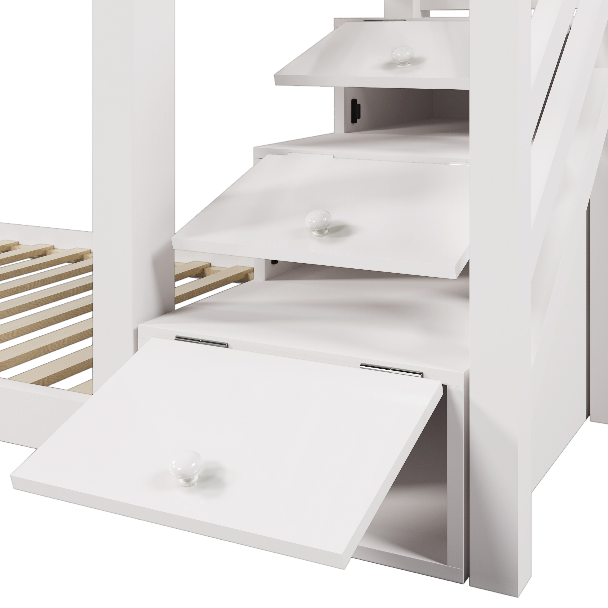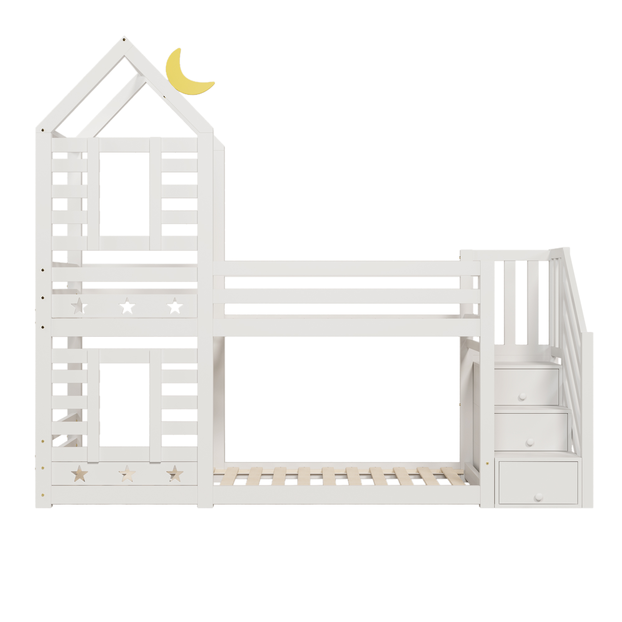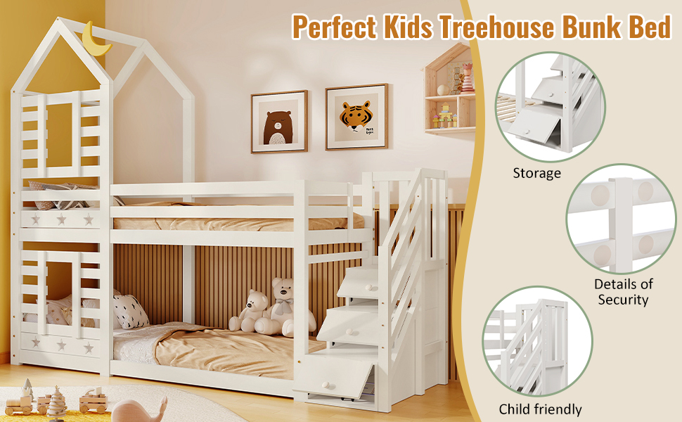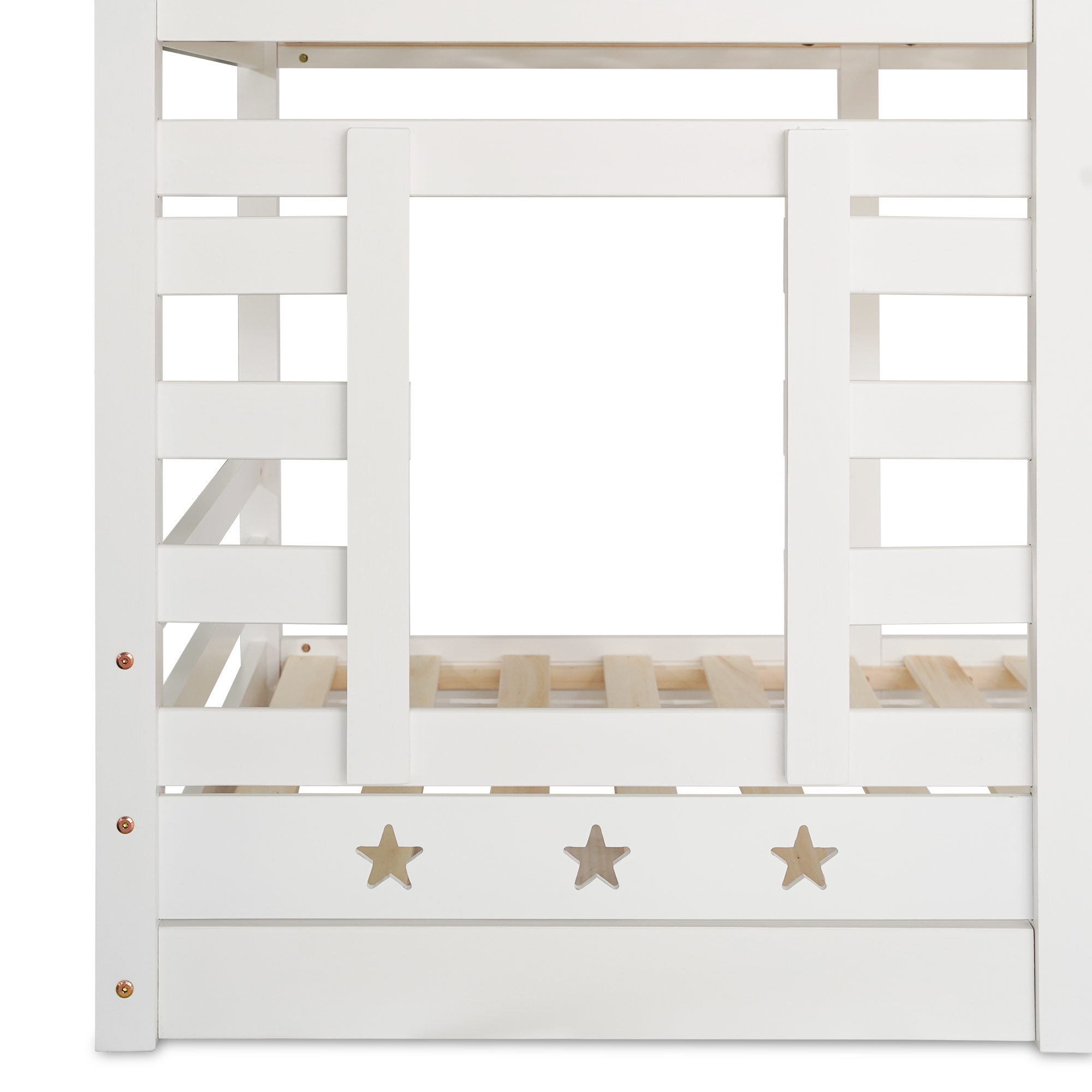 Product Name:Bunk Bed Storage Children Cabin Bed Single Bed with Window for Kids, Twin Sleeper 190x90 cm, Solid Pine Wood,3FT -White(=SKU:TT30352678W)