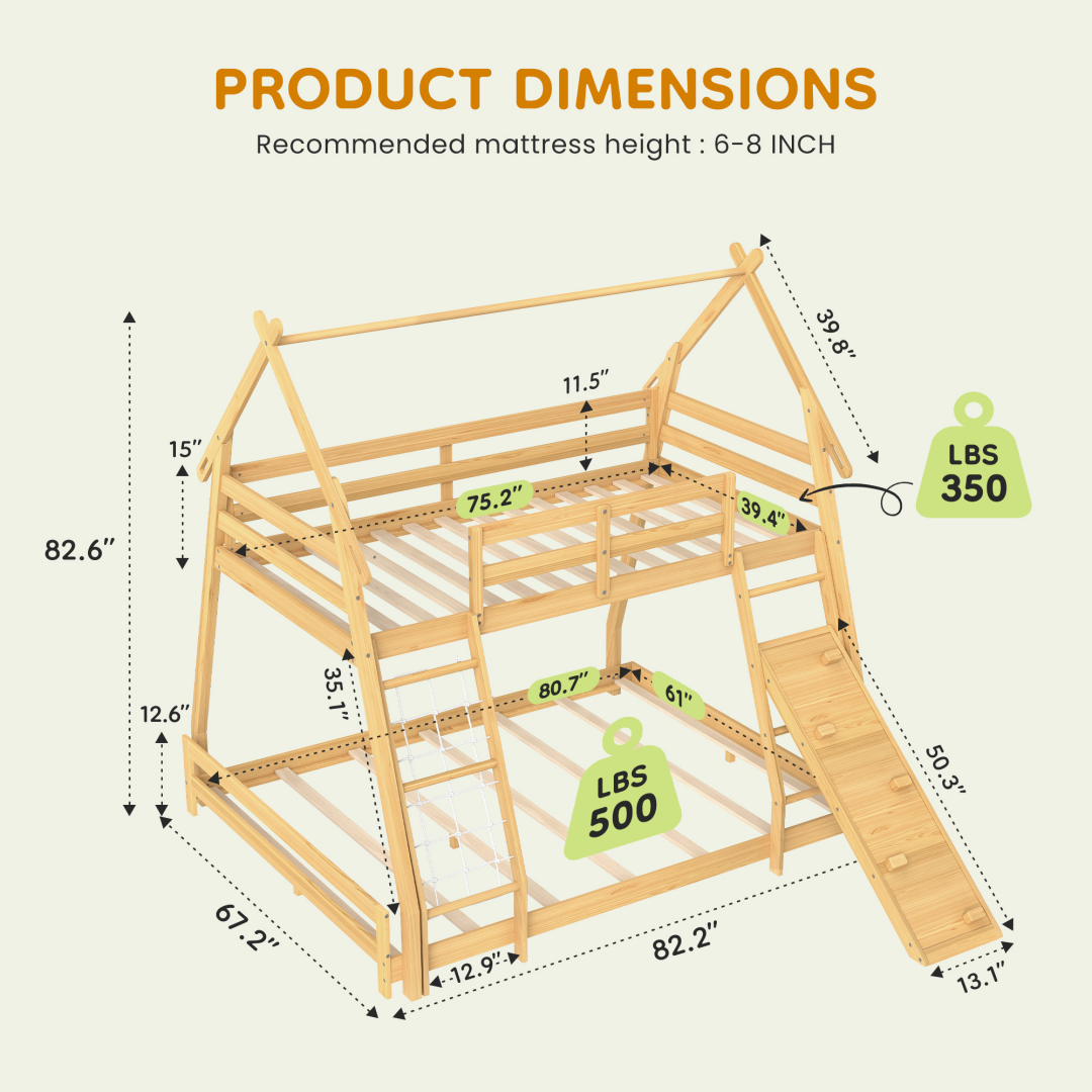 [Enhanced Safety Features] Safety is paramount in this kids bunk bed. It includes high guardrails on uper bunk to prevent falls. The climbing net is made from wear-resistant, non-slip material with reinforced knots. The ladder features wider, angled steps for a safer and more secure climb than vertical alternatives, ensuring peace of mind.