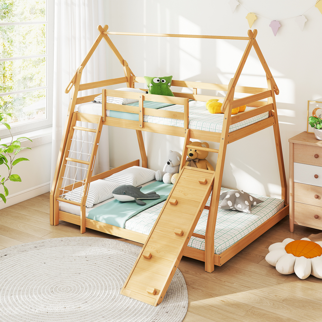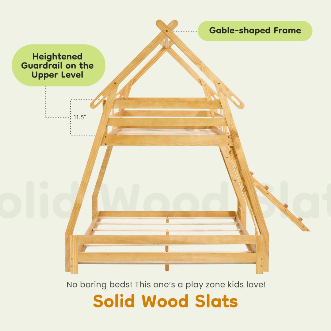 [Maximizes Vertical Space] Perfect for small rooms, this house bed for kids uses vertical space efficiently with its two levels. The bottom bunk can be used as a cozy sleep zone for a toddler bed, a play area, or for storage. This twin bed frames for kids is an ideal space-saving solution for shared kids' rooms or creating more floor space for activities.