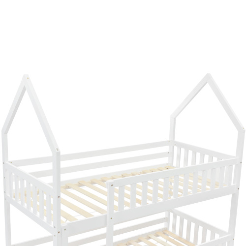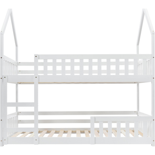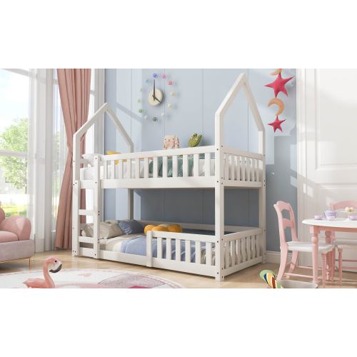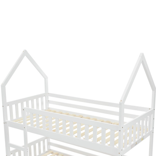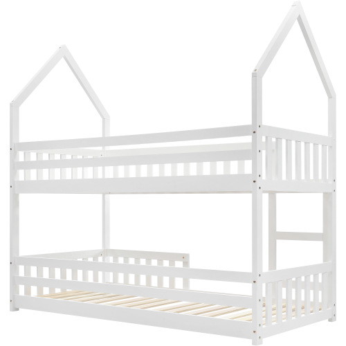 Bunk Bed, Twin Sleeper Bed With Ladder, Solid Wood Frame 3FT Single Bed, Gaming Bed, Castle-shaped Bed 90 X 190 Cm Children's Bed Room Furniture, Wooden Bed Frame For Kids Children White