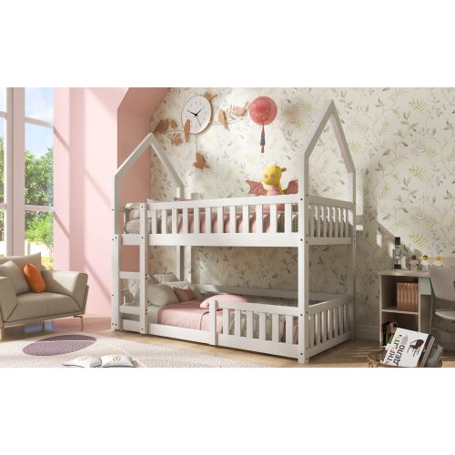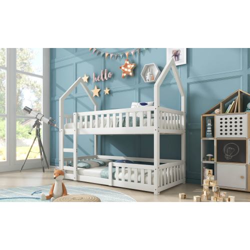 Product Name:Bunk Bed, Twin Sleeper Bed with Ladder, Solid Wood Frame 3FT Single bed, Gaming Bed, Castle-shaped Bed 90 x 190 cm Children's Bed room Furniture, Wooden Bed Frame for Kids Children (White)