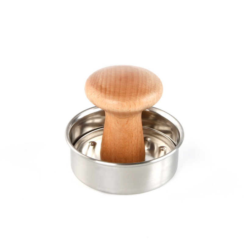 Burger press mould stainless steel 304 meat press, beech wood handle stainless steel meat press