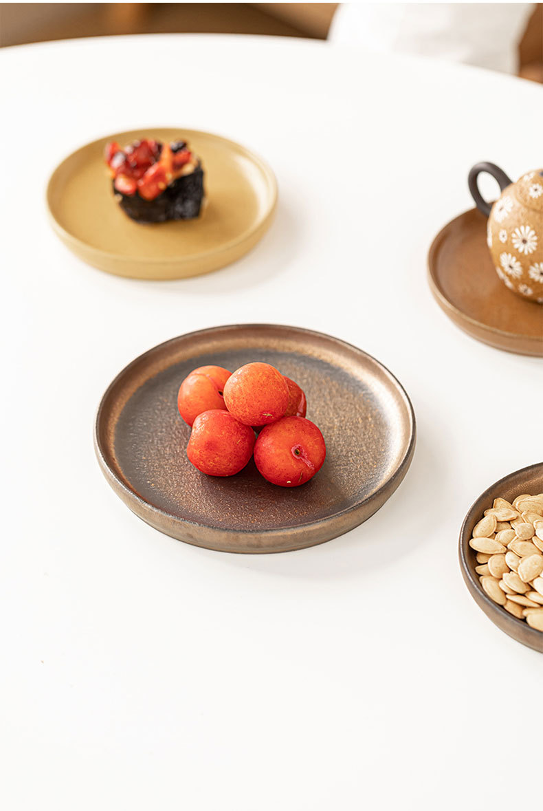 Color: round edge bone china plate/piece (palegreen-12cm), round edge bone china plate/piece (creamy-white-12cm), round edge bone china plate/piece (ginger yellow-12cm), round edge bone dish/piece (lemon yellow-12cm), round edge bone dish/piece (gold plated color-12cm)