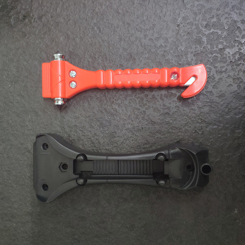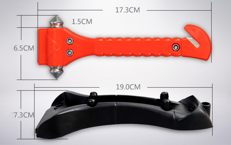 2. Cutter: hook-shaped embedded blade, cut off the seat belt in case of accident and escape.