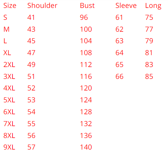 Size: S/M/L/XL/XXL/3XL/4XL/5XL/6XL/7XL/8XL/9XL