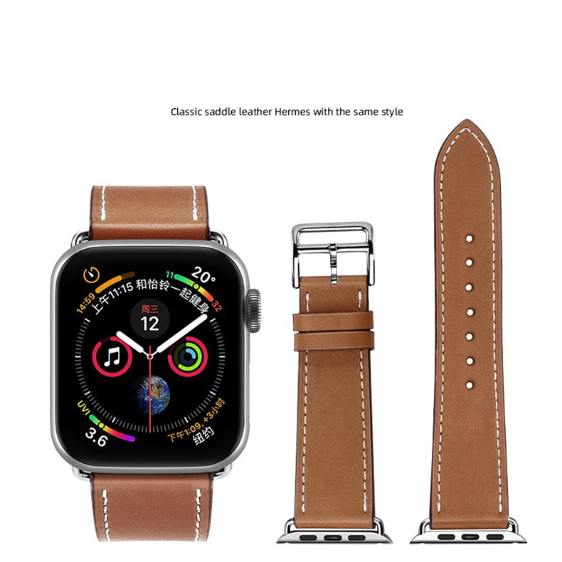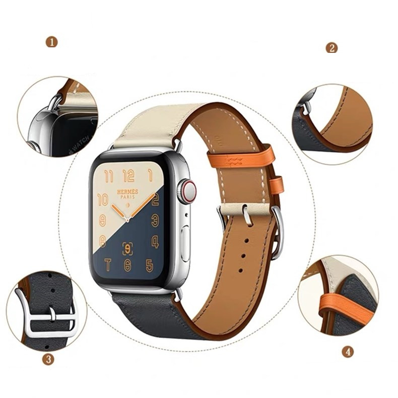 The strap is made of stainless steel connectors, selected high-quality leather materials, original car lines, precise color matching, and the perfect combination of stainless steel buckles. The strap is simple, beautiful, and has good air permeability.